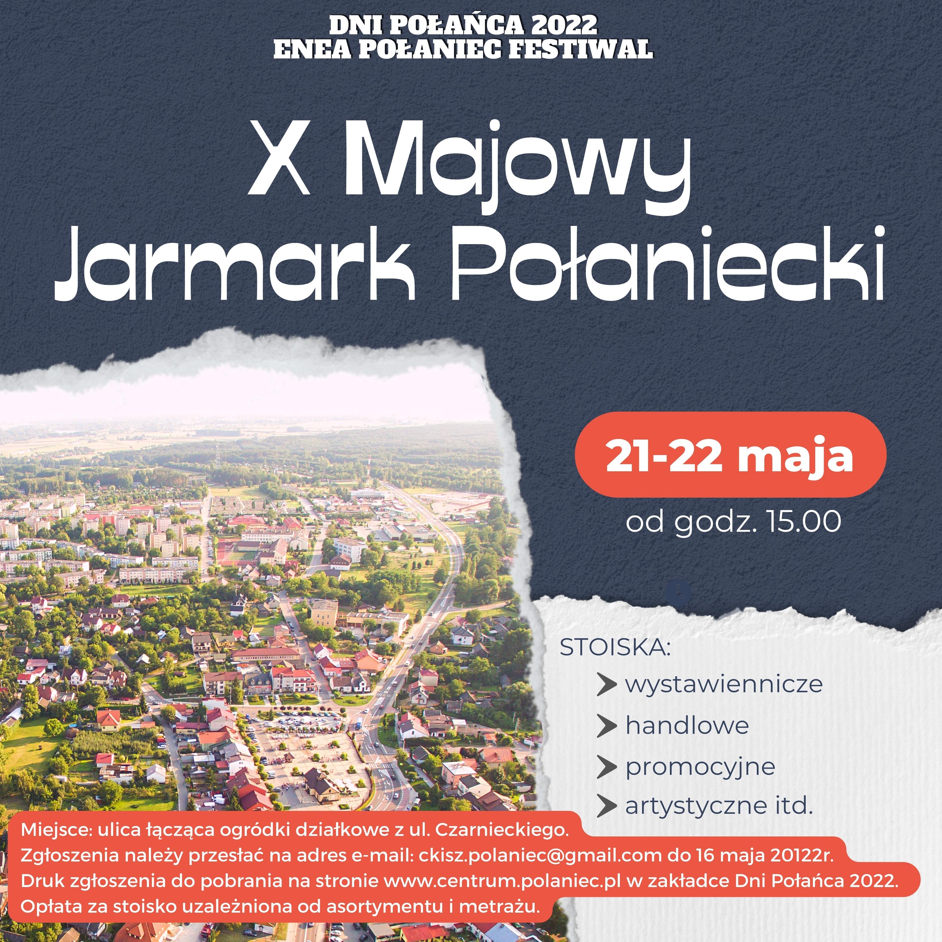 Zapraszamy do udziału w X Majowym Jarmarku Połanieckim w dniach 21-22 maja 2022r od godz. 15.00w ramach dni Połańca 2022 - Enea Połaniec Festiwal