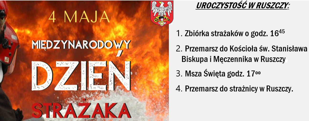 Tegoroczne gminne obchody Dni Strażaka 2022 odbyły się w Ruszczy. Druhowie wraz z zaproszonymi gośćmi uroczystą defiladą przeszli spod budynku Ochotniczej Staży Pożarnej do Kościoła Św. Stanisława Biskupa i Męczennika. Uroczystą Mszę Świętą w intencji Strażaków odprawili: ks. Proboszcz Józef Grabda, ks.Proboszcz Leszek Pituch oraz ks.Proboszcz Mariusz Piotrowski.