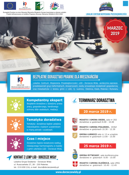 Informacja o bezpłatnym doradztwie księgowo-podatkowym i doradztwie prawnym