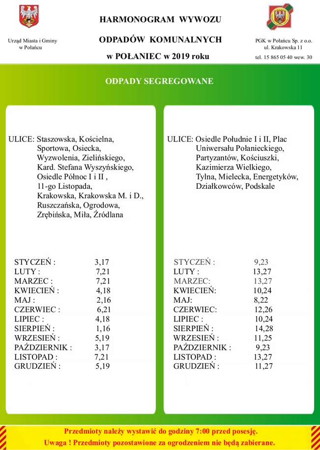 HARMONOGRAM WYWOZU ODPADÓW KOMUNALNYCH 2019