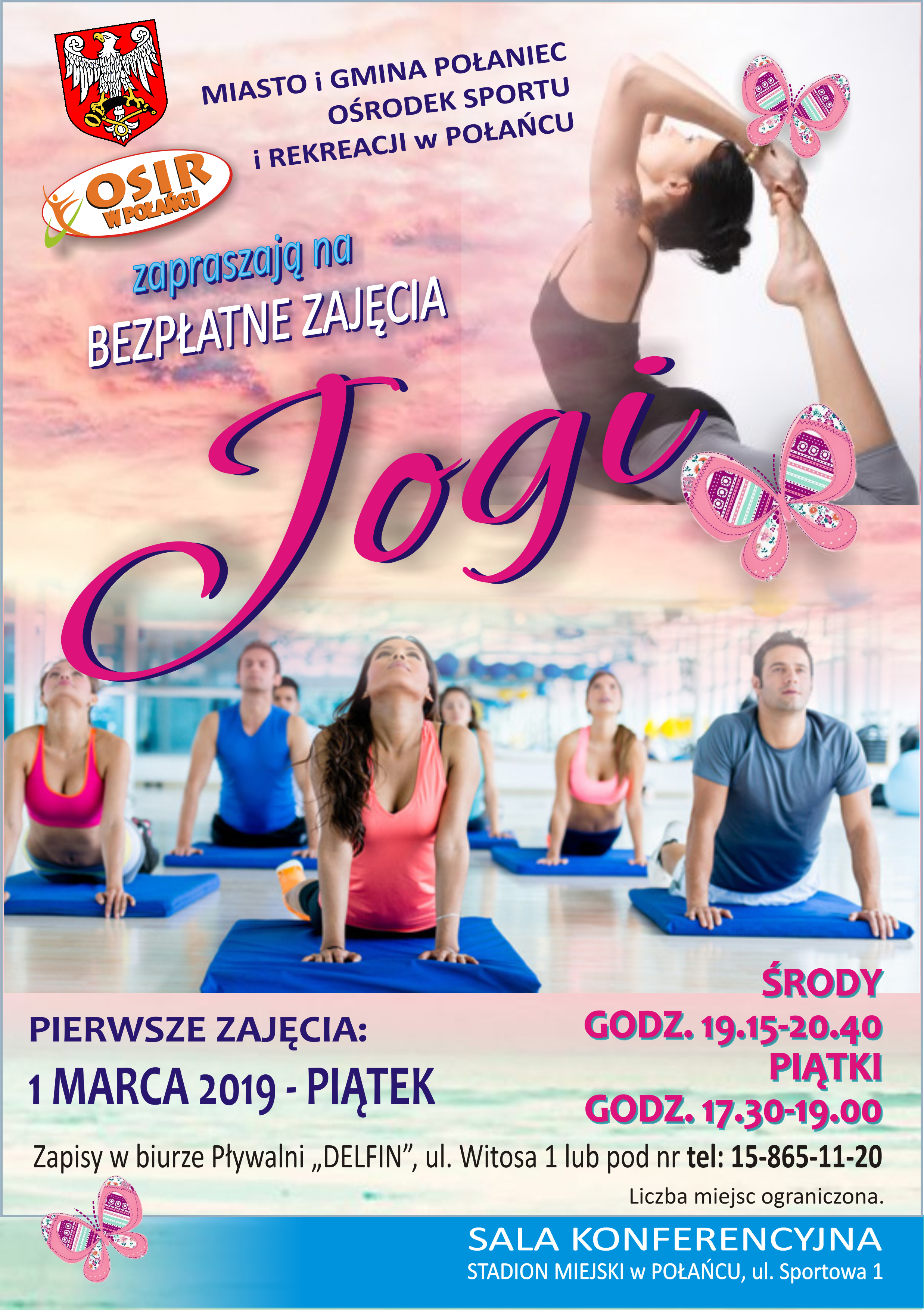 Zapisy na zajęcia od 19.02.2019 od godzimy 8.00 w biurze na Pływalni „Delfin” lub pod numerem telefonu 15 8650-120