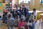 Będąc jeszcze na „stacji” dzieci wysłuchały kilku zdań o Julianie Tuwimie oraz dowiedziały się jak ważne w naszym życiu jest codzienne czytanie. Rozwiązanie krótkiej zagadki zdradzało przedszkolakom tytuł czytanego wiersza „Lokomotywa”. Następnie wszyscy wygodnie usiedli w „wagonach” i wybrali się w niezwykłą podróż tuwimowską lokomotywą. Czytaniu wiersza towarzyszyły wyświetlane na tablicy interaktywnej ilustracje i zdjęcia, a z głośników wydobywały się odgłosy pomagające wczuć się w jego klimat. Przygotowana przez bibliotekarzy forma przekazu wiersza pozwoliła przedszkolakom na chwilę poczuć wszystko to, o czym mówi każdy fragment bajki.