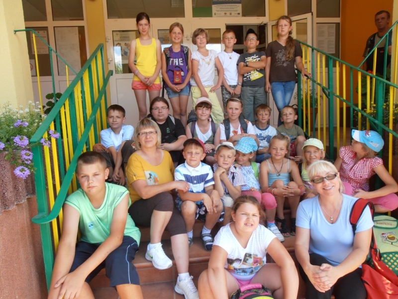 Po pobycie w gimnazjum, wesoła i sympatyczna grupa dzieci z trójką wychowawczyń oglądała urocze place zabaw, dinozaury, muszlę koncertową, a po sesji zdjęciowej wszyscy pojechali na obiad do "Karoliny", gdzie wspólnie wspominali udany dzień kolonisty.