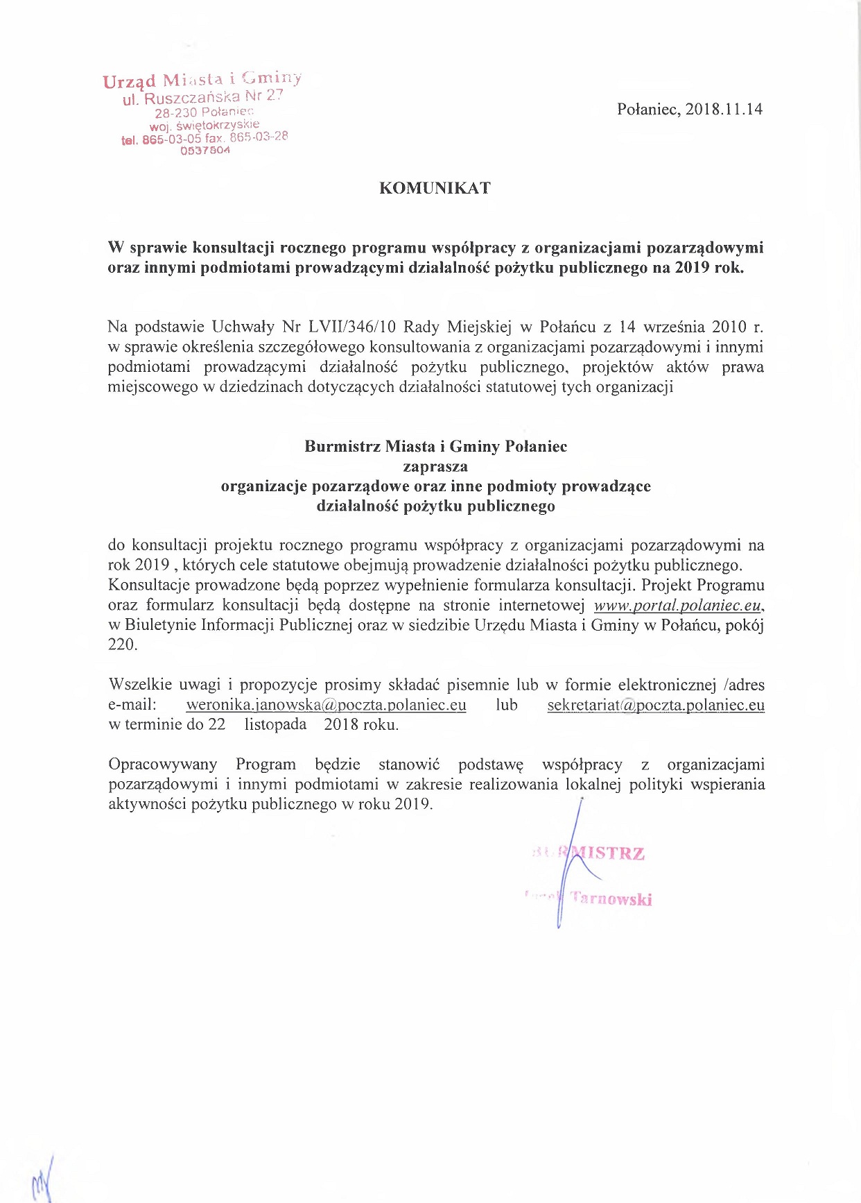 Zachęcam gorąco do dzielenia się swoim dorobkiem literackim na łamach „Merkuriusza Połanieckiego”. Materiały do kolejnego wydania czasopisma będą przyjmowane do końca listopada br. (pod adresem mail; dominika.reichert@poczta.polaniec.eu lub w UMiG pok. 215).