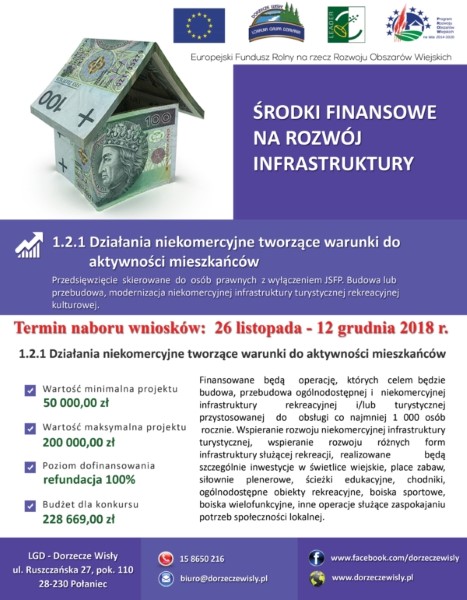 OGŁOSZENIE O NABORZE WNIOSKÓW NA PRZEDSIĘWZIĘCIE 1.2.1 DZIAŁANIA NIEKOMERCYJNE TWORZĄCE WARUNKI DO AKTYWNOŚCI MIESZKAŃCÓW KONKURS NR 16/2018