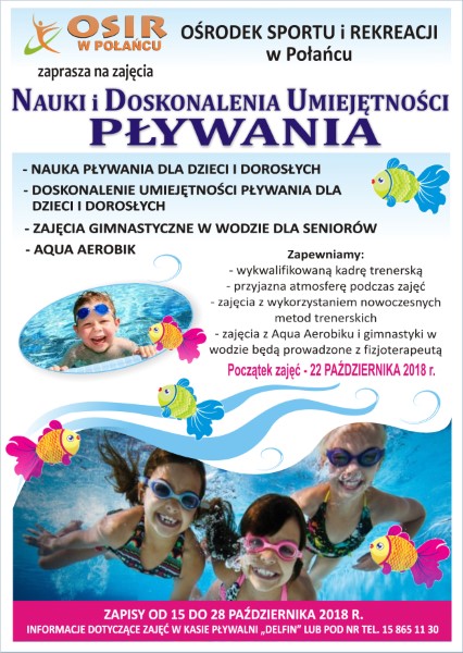 OŚRODEK SPORTU I REKREACJI ZAPRASZA NA ZAJĘCIA NAUKI I DOSKONALENIA PŁYWANIA