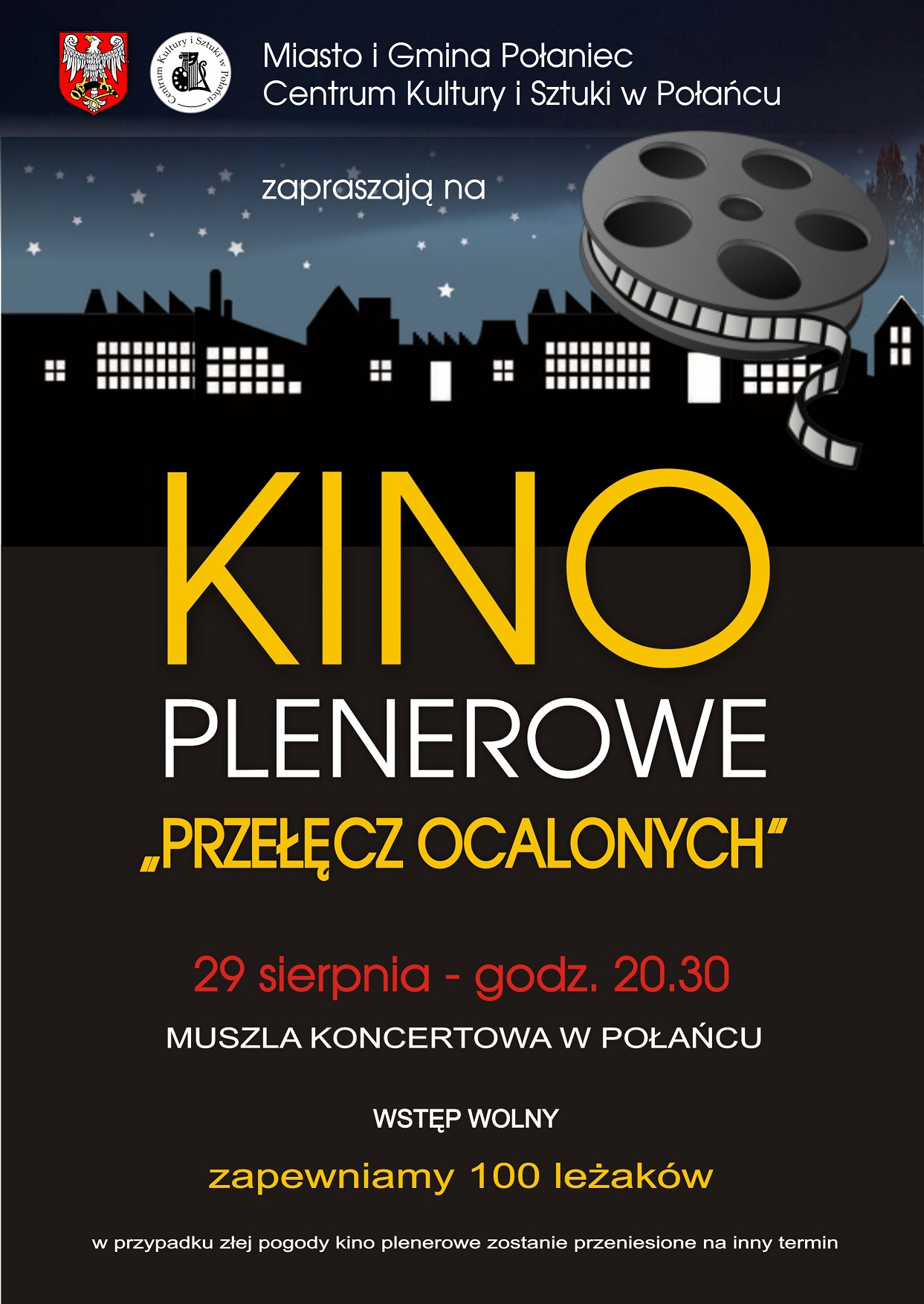 KINO PLENEROWE po raz pierwszy w Połańcu!!!. 29 sierpnia o godz. 20.30 zapraszamy wszystkich kinomanów na muszlę koncertową na bezpłatny seans oscarowego filmu w reżyserii Mela Gibsona "PRZEŁĘCZ OCALONYCH". Zapewniamy 100 leżaków i filmową atmosferę ....