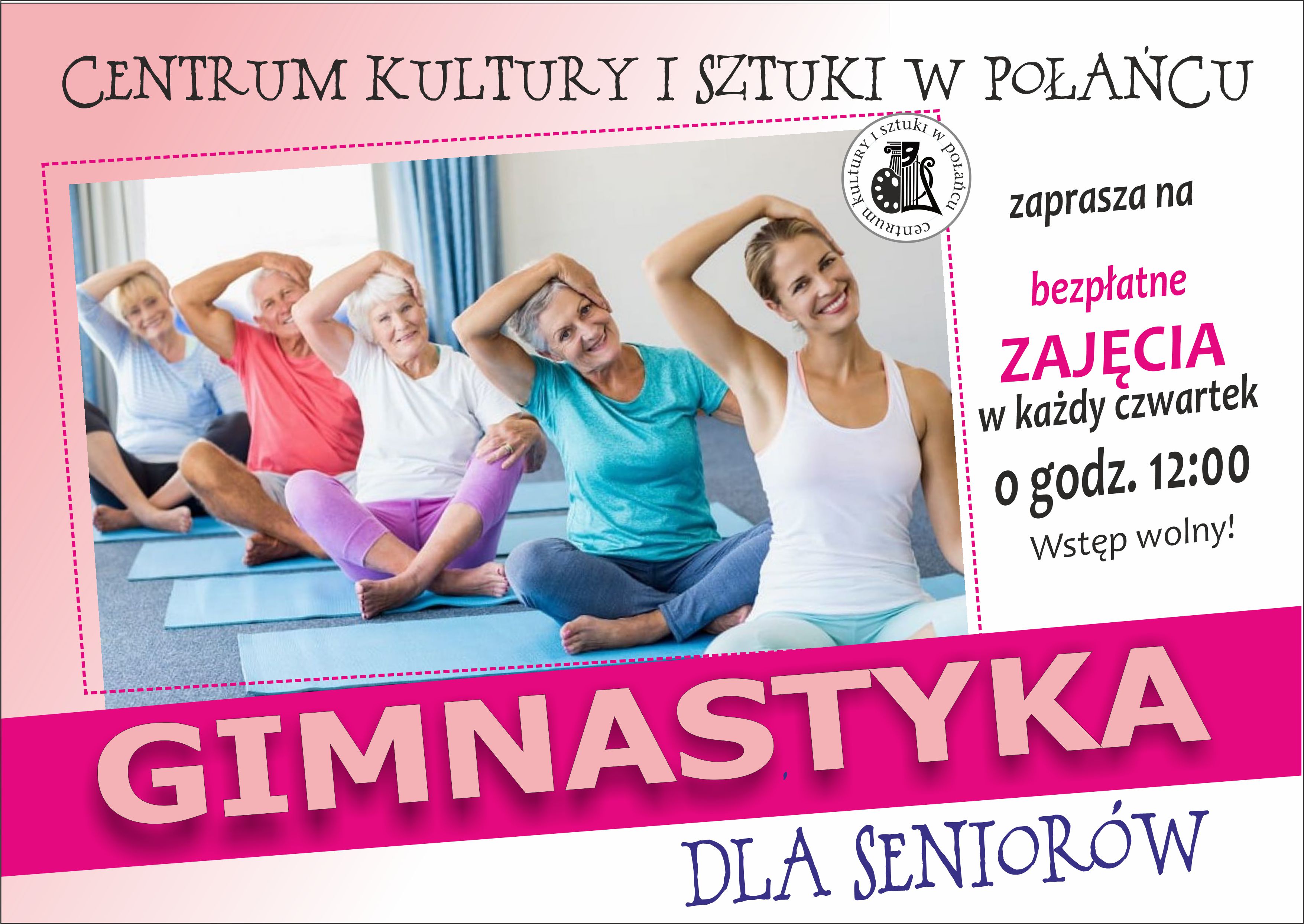 Centrum Kultury i Sztuki w Połańcu zaprasza seniorów w każdy czwartek o godz. 12.00 na bezpłatne zajęcia ruchowe pod hasłem GIMNASTYKA DLA SENIORÓW. Zajęcia mają na celu zachowanie i poprawę kondycji fizycznej seniorów. Program spotkań opiera się na naturalnych formach ruchu.