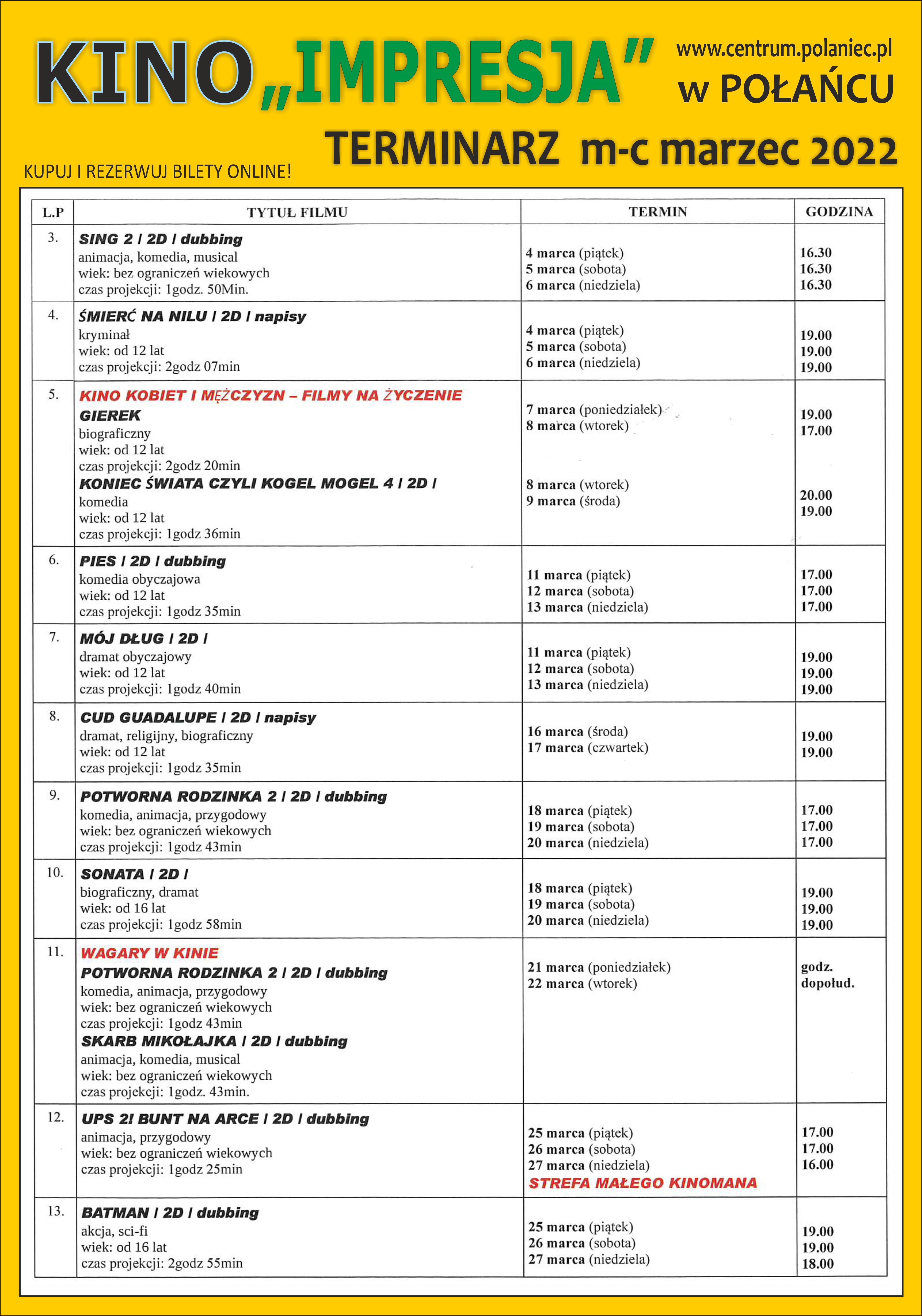 W najbliższy weekend 4- 6 marca Kino "Impresja" zaprasza o godz. 16.30 na drugą część fantastycznej animacji SING 2, a o godz. 19.00 na ŚMIERĆ NA NILU, kryminał zrealizowany na podstawie powieści Agathy Christie Śmierć.