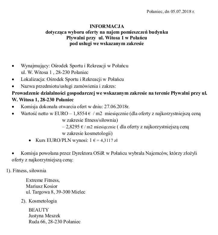 REKREACYJNY BASEN ZEWNĘTRZNY JUŻ FUNKCJONUJE. ZAPRASZAMY DO KORZYSTANIA