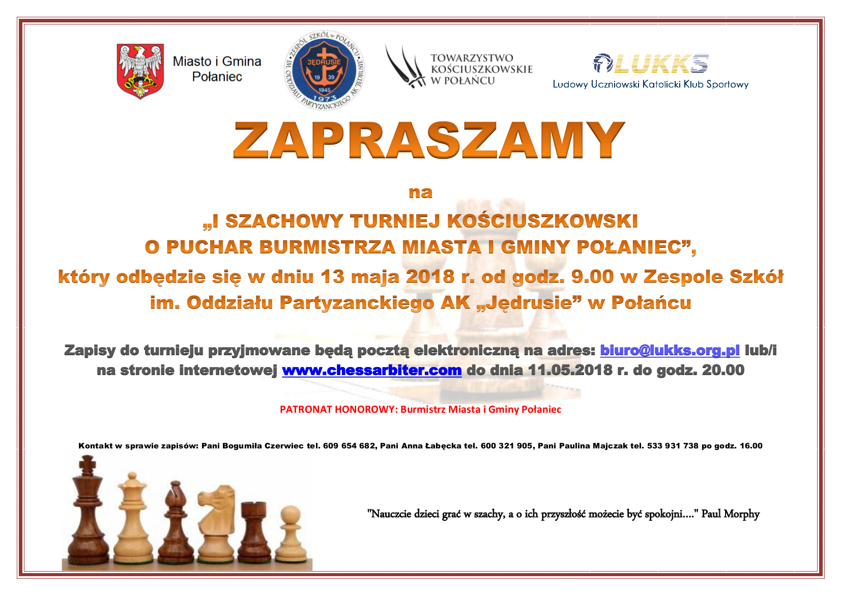 I SZACHOWY TURNIEJ KOŚCIUSZKOWSKI O PUCHAR BURMISTRZA MIASTA I GMINY POŁANIEC
