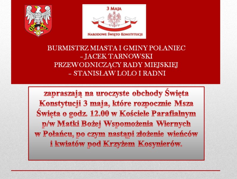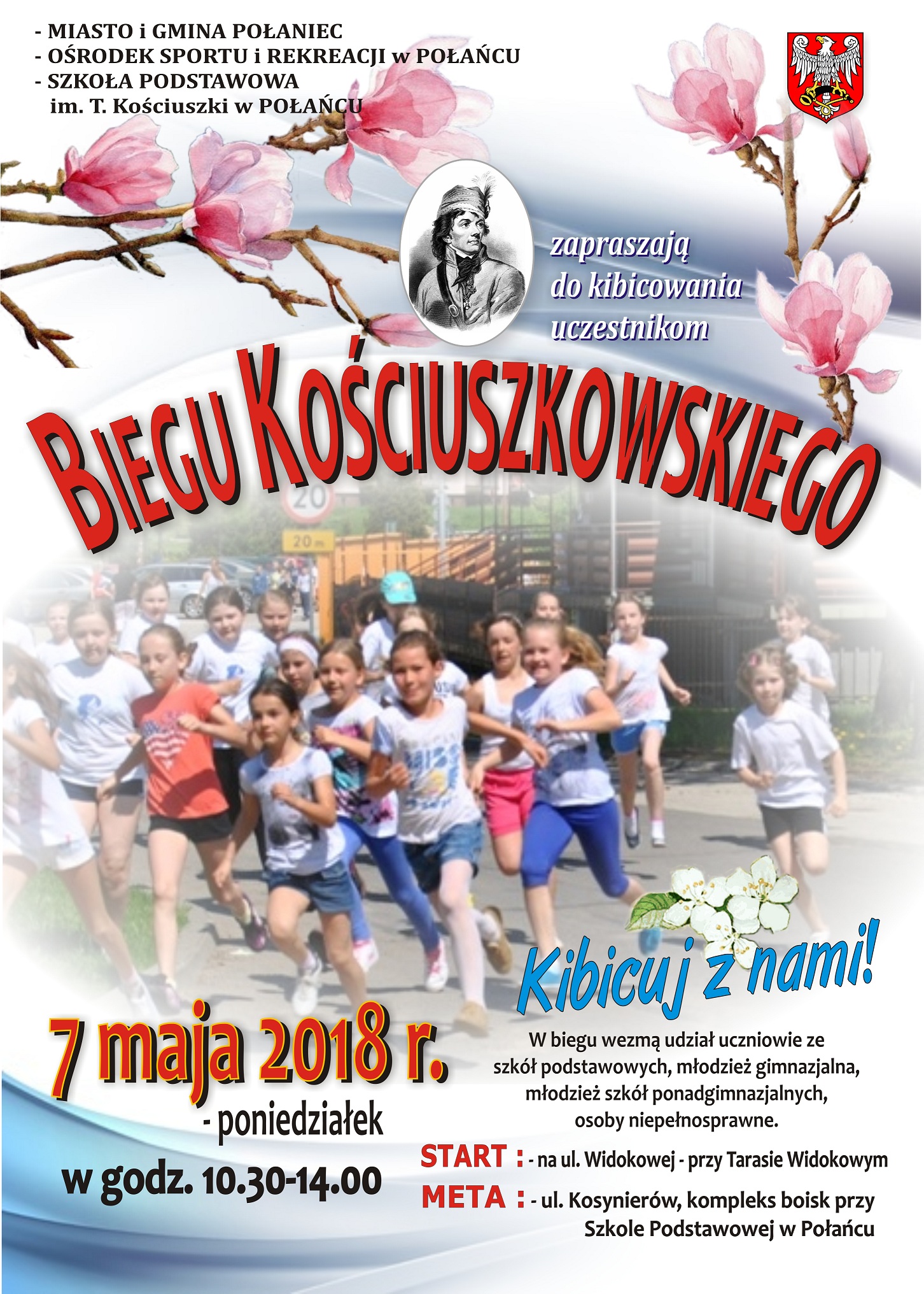 ORGANIZATORZY BIEGU KOŚCIUSZKOWSKIEGO 2018 I MARSZU NORDIC WALKING INFORMUJĄ ŻE W DNIU 5.05.2018 tj. sobota W GODZINACH OD 11.00 DO 12.30 BĘDĄ UTRUDNIENIA W RUCHU NA ULICACH : KOSYNIERÓW, J.KILIŃSKIEGO, B.KUBIKA, WESOŁA, J.PIŁSUDZKIEGO, K.WARCHAŁOWSKIEGO, M.JAŃCZUKA, WIDOKOWA, GEN.KLEEBERGA, AKACJOWA, W.WITOSA