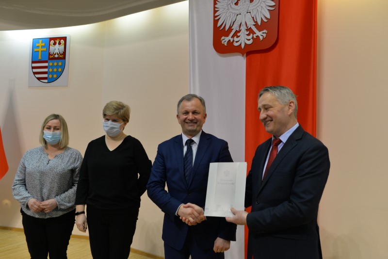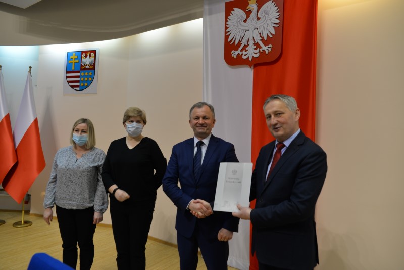 Umowy z Wojewodą Świętokrzyskim - Panem Zbigniewem Koniuszem na przekazanie pieniędzy podpisał pełniący funkcję Burmistrza Miasta i Gminy Połaniec – Pan Jacek Nowak, skarbnik Gminy – Pani Małgorzata Żugaj w obecności kierownika Ośrodka Pomocy Społecznej – Pani Ewy Tomalskiej.