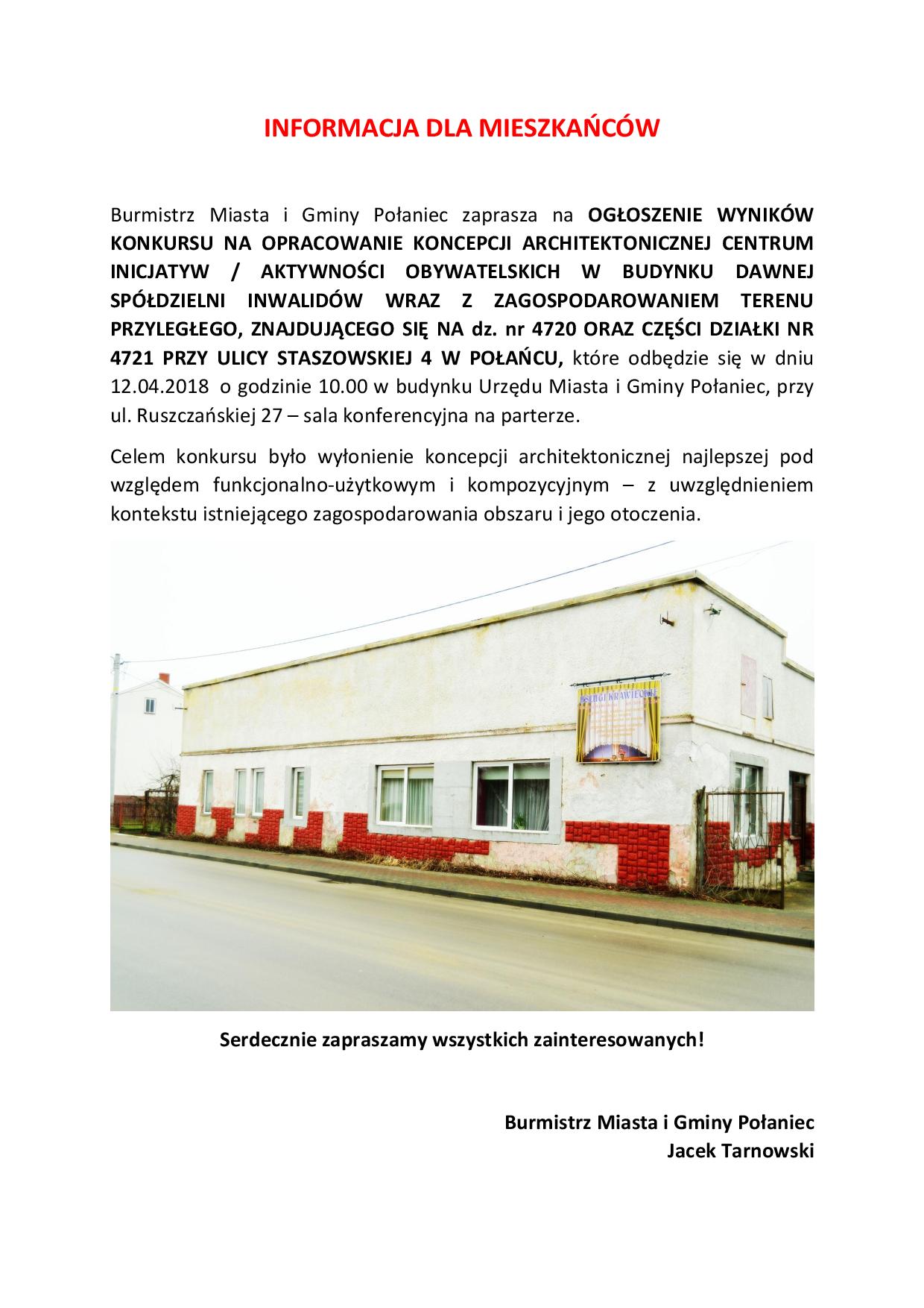 Na podstawie art. 20 ust. 3 ustawy z dnia 8 marca 1990 roku o samorządzie gminnym (t.j. w Dz. U z 2017 r. poz. 1875 ze zmianami) zwołuję sesję Rady Miejskiej w Połańcu w dniu 12 kwietnia 2018 r. – godz. 16:00.