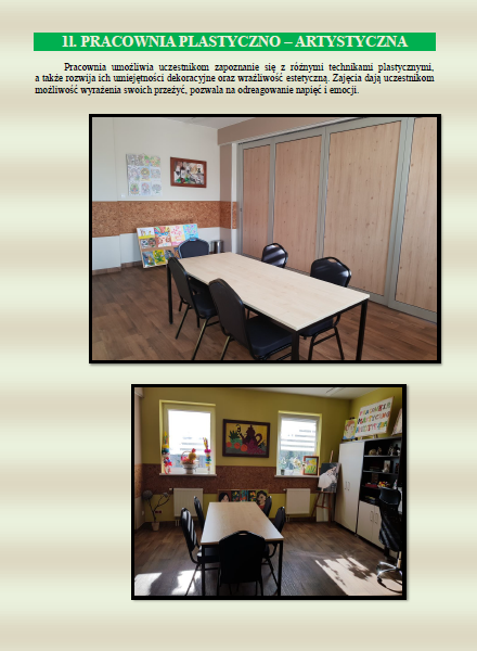 Pracownia plastyczno – artystyczna to miejsce, gdzie wielu uczestników odkryło swoje ukryte talenty. Powstają tu przepiękne obrazy malowane różnego rodzaju farbami, kredkami czy też pastelami. Podopieczni wykonują także kartki okolicznościowe, jak również inne ciekawe rzeczy, które zostaną przedstawione w poniższym artykule.