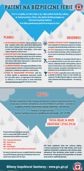 Funkcjonariusz przypomniał o zagrożeniach czyhających na dzieci w trakcie ferii zimowych. Omówił z dziećmi zasady bezpieczeństwa podczas uprawiania sportów zimowych i zabaw na świeżym powietrzu. Przestrzegał przed ślizganiem się na skutych lodem jeziorach, stawach i rzekach, a także przed zjeżdżaniem z górek znajdujących się blisko ruchliwych ulic. Uczniowie otrzymali wskazówki jak bezpiecznie bawić się na śniegu i jak zachować się na kuligu. Natomiast dzieci, które pozostają w domach zostały poinformowane o konieczności zamykania drzwi od wewnątrz i o zakazie wpuszczania osób nieznajomych.