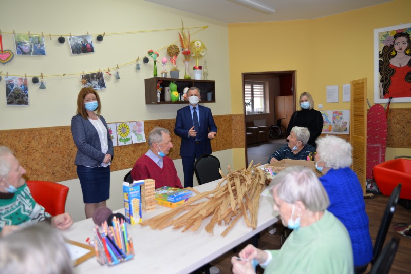 Tematem spotkania było omówienie spraw bieżących, jak również realizacja zaplanowanych zadań, na które będzie można pozyskać środki zewnętrzne. Podczas wizyty w asyście kierownik Ośrodka Pomocy Społecznej – Pani Ewy Tomalskiej pełniący funkcje Burmistrza – Pan Jacek Nowak wizytował poszczególne pracownie rozmawiając z podopiecznymi o dalszych potrzebach placówki wyrażając duże uznanie dla pracowników i podopiecznych placówki.