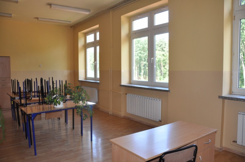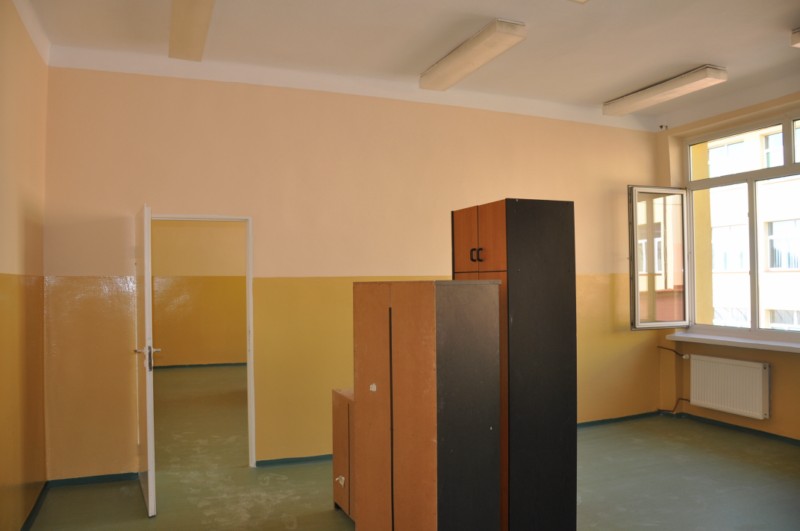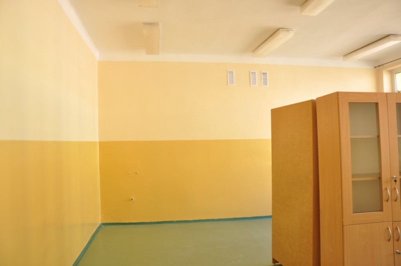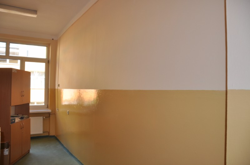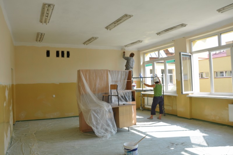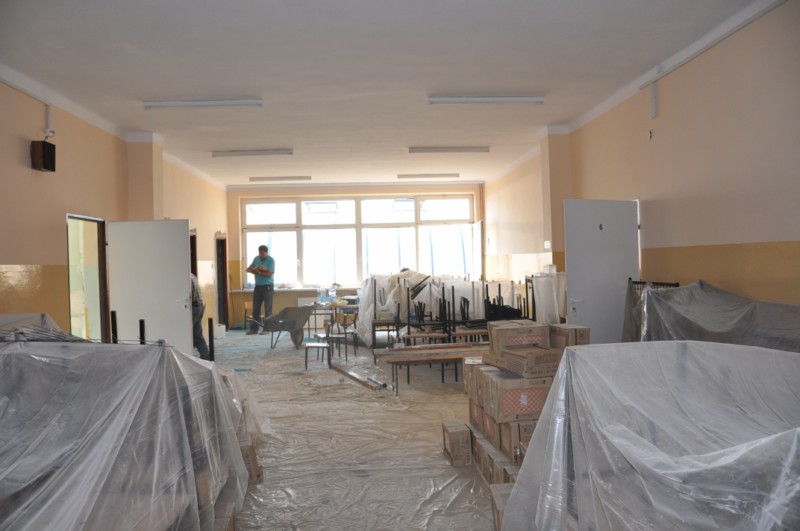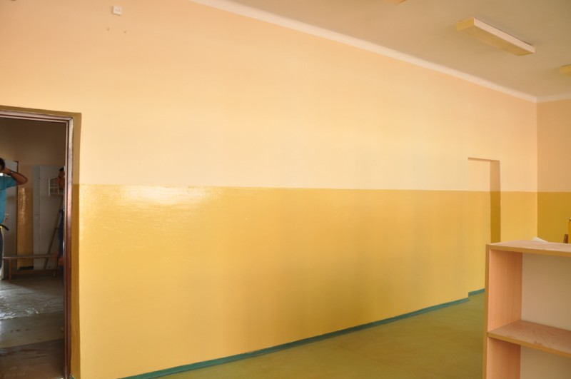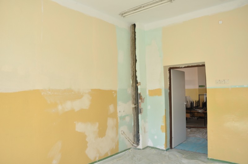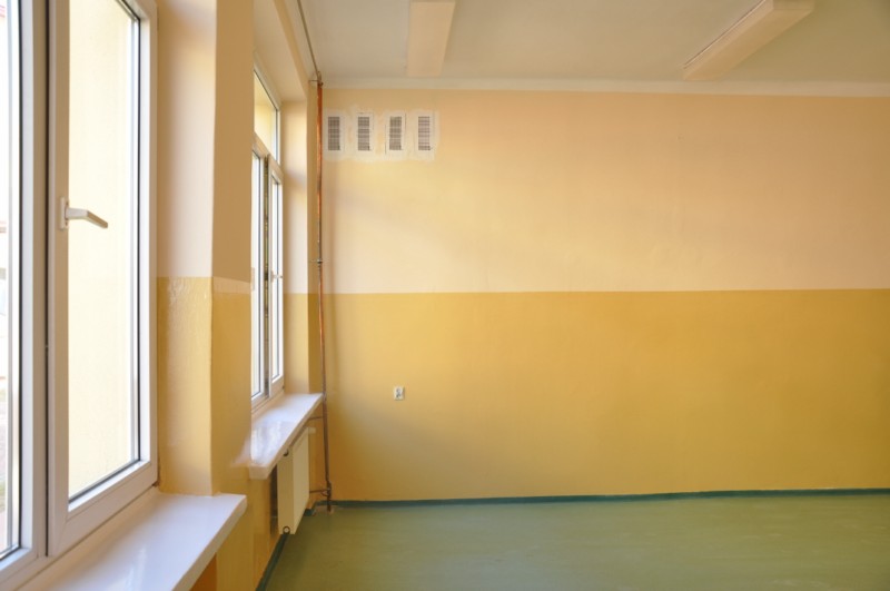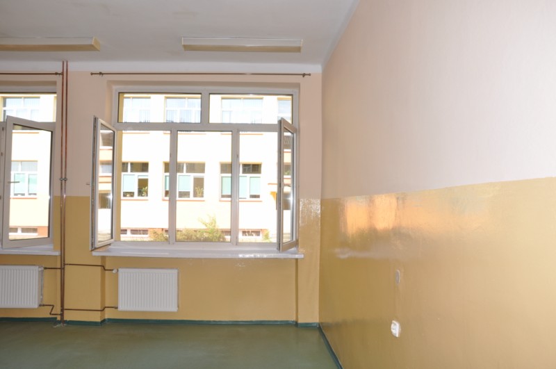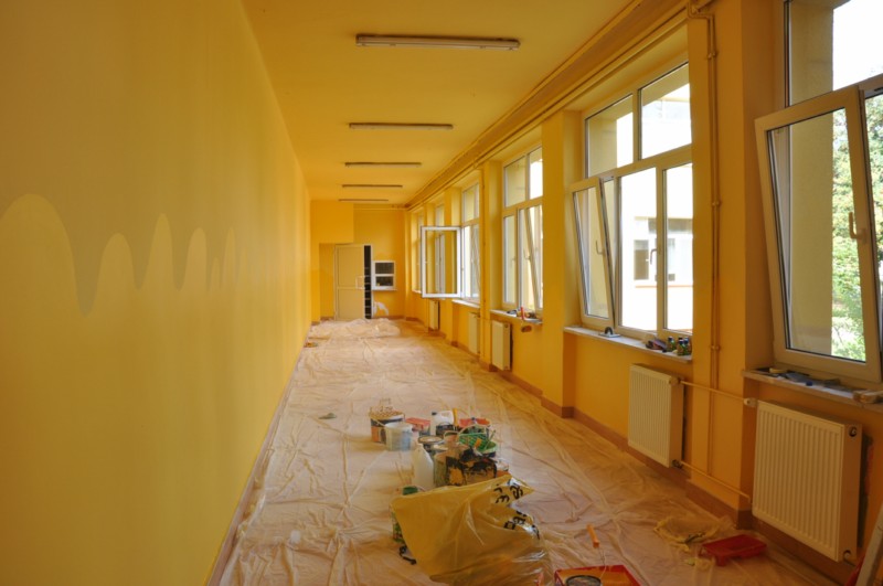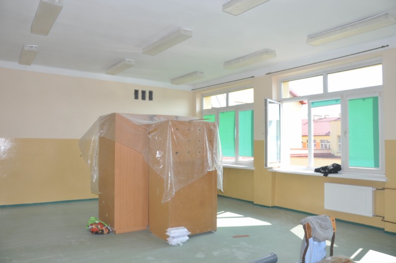 W budynku odmalowano hol, odnowiono korytarze, sale lekcyjne i łazienki. Trwają końcowe prace remontowe.