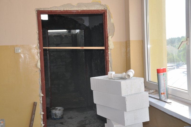 Zakres prac remontowych objął istniejącą łazienkę usytuowaną na piętrze budynku, a zakres prac budowlanych polega na: wymianie okładzin ściennych i podłogowych, wymianie drzwi wewnętrznych, wymianie wewnętrznych instalacji wodno - kanalizacyjnych wraz z tzw. białym montażem, elektrycznych wraz z oprawami oświetleniowymi. Dostosowano także byłe pomieszczenie pralni na gabinet logopedy i wyremontowano łazienki. Odmalowano część ogrodzenia.