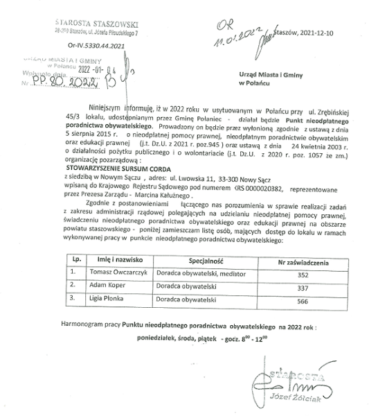 Informujemy, że zgodnie z oczekiwaniami mieszkańców porady prawne zostają przeniesione od 1 lutego 2022 roku z Punktu na ul. Zrębińskiej do budynku Centrum Kultury i Sztuki/ wejście od strony pracowni plastycznej. Ponadto porady prawne będą udzielane w Urzędzie Miasta i Gminy.
