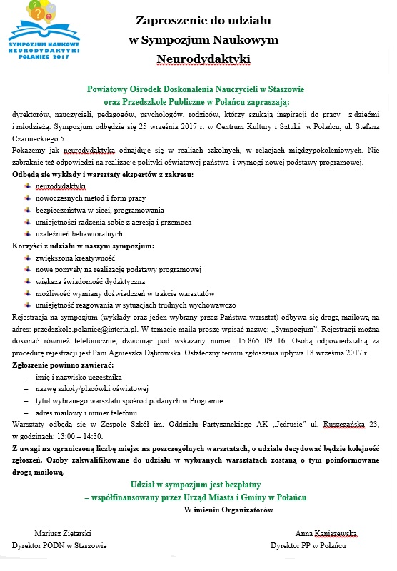 Mieszkańcy miejscowości Zdzieci Nowe (uczestnicy spotkania) składają serdeczne podziękowania Burmistrzowi Miasta i Gminy Połaniec – Panu Jackowi Tarnowskiemu oraz Radnej Rady Miejskiej – Pani Annie Śmistek za pomoc w zorganizowaniu integracyjnego spotkania ogniskowego w dniu 2 września 2017 roku w sołectwie Zdzieci Nowe, sponsorom, a zaproszonym gościom za udział.
