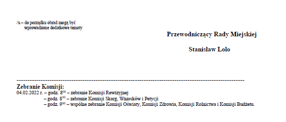 Proszę Państwa ustawa z dnia 11 stycznia 2018 r. o zmianie niektórych ustaw w celu zwiększenia udziału obywateli w procesie wybierania, funkcjonowania i kontrolowania niektórych organów publicznych, nakłada na samorządy obowiązek transmisji, nagrywania i udostępniania nagrań obrad rady gminy,. Art. 20.1b ustawy o samorządzie gminnym stanowi, że obrady rady gminy są transmitowane i utrwalane za pomocą urządzeń rejestrujących obraz i dźwięk. Nagrania obrad są udostępniane w Biuletynie Informacji Publicznej i na stronie internetowej gminy oraz w inny sposób zwyczajowo przyjęty. W związku z powyższym podczas Sesji Rady Miejskiej odbywa się fotografowanie, filmowanie i rejestracja audio osób biorących w nich udział. Pozyskane w ten sposób materiały są eksploatowane na nośnikach lub publikowane w sieci Internet w celu transparentności działań Rady Miejskiej. Biorąc więc udział w Sesji Rady Miejskiej dana osoba musi być świadoma, iż przetwarza się jej wizerunek, tym samym akceptuje niniejsze warunki.