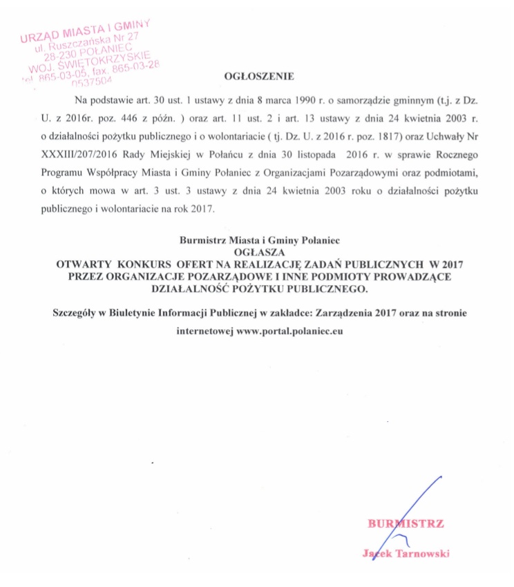 Jednym z tak bardzo ważnych tematów jest przeprowadzenie konsultacji i zebranie opinii mieszkańców w sprawie wniosku złożonego przez Grupę Azoty Kopalnie i Zakłady Chemiczne Siarki „Siarkopol” S.A. w Grzybowie o udzielenie koncesji na rozpoznawanie złoża siarki rodzimej „Rudniki 2” – nieruchomości gruntowe, należące do miejscowości Rudniki, Brzozowa, Okrągła i Połaniec. O zaopiniowanie wniosku do Burmistrza Miasta i Gminy Połaniec zwróciło się Ministerstwo Środowiska Departament Geologii i Koncesji Geologicznych w Warszawie. W związku z powyższym zaprasza się mieszkańców do udziału w spotkaniach i wyrażeniu swoich opinii w tak bardzo ważnych i znaczących sprawach.