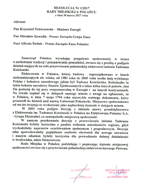 3. Rozpatrzenie projektu rezolucji w sprawie przywrócenia Elektrowni Połaniec – obecnie Enea Połaniec, im. Tadeusza Kościuszki.