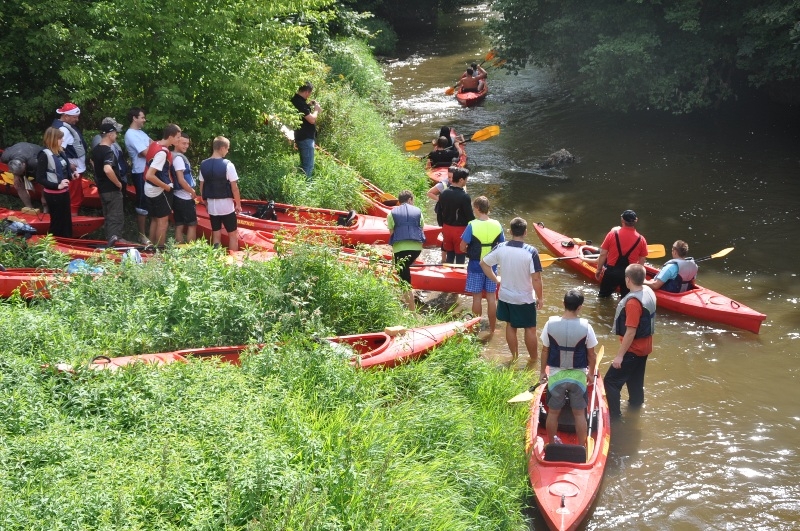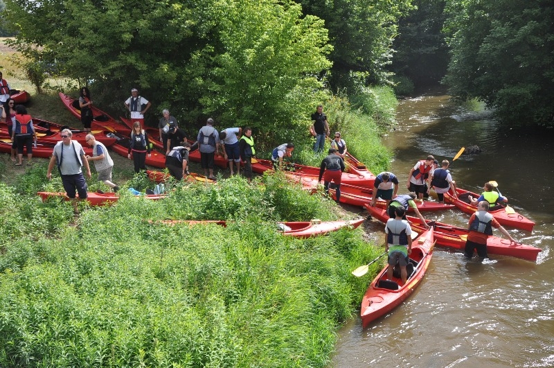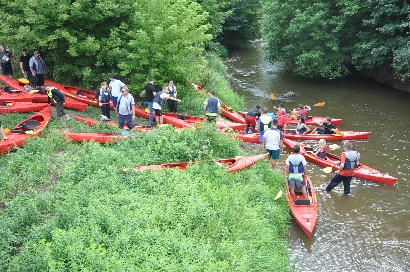 Cała przygoda rozpoczęła się w Niedziałkach, gdzie zwodowano bezpiecznie wszystkie 26 kajaków i uczestnicy popłynęli z biegiem nurtu rzeki Czarnej - głównej rzeki powiatu staszowskiego. Wszyscy szczęśliwie pokonali trasę spływu, podziwiając nadbrzeżne obszary porośnięte, nierzadko bujną i różnorodną, roślinnością. Nie brakowało również atrakcji w postaci śladów bytności pozostawionych przez bobry, które zamieszkują zakola rzeki.