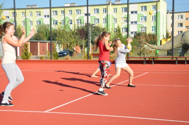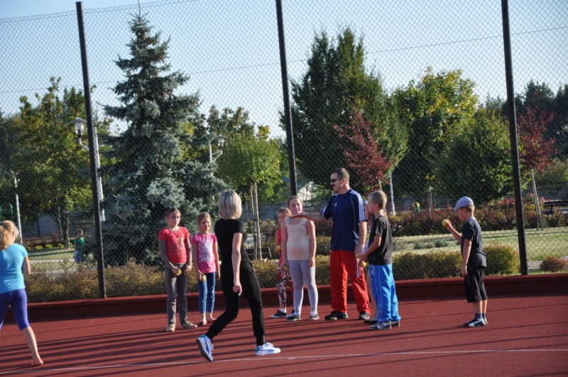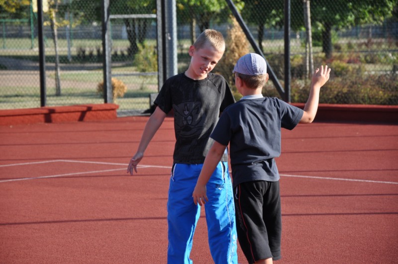 Na boisku szkolnym przy Publicznym Gimnazjum nr 1odbywały się także zajęcia rekreacyjne z koszykówki. Ośmiu chłopców zapoznawało się z elementami techniki i zasadami gry tej dyscypliny sportowej. Zajęcia prowadzi Wiktor Skrobacz.