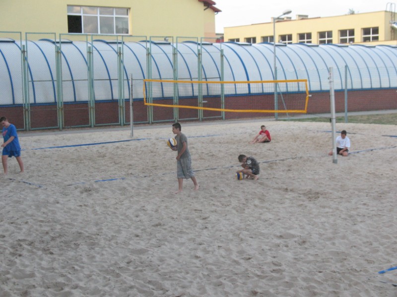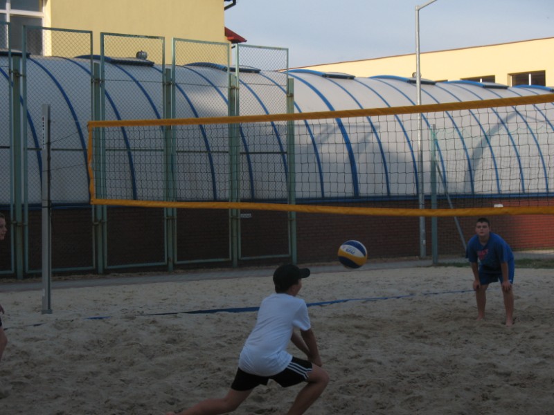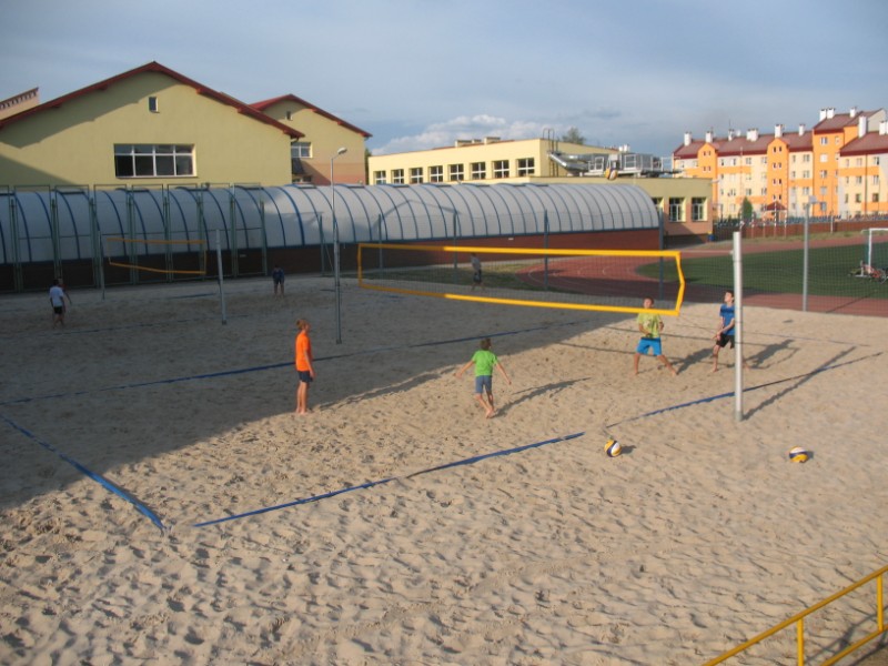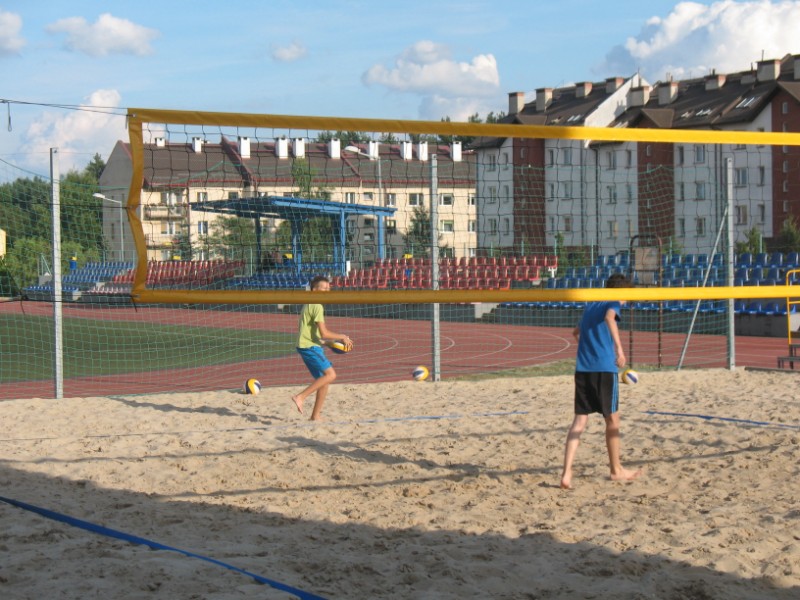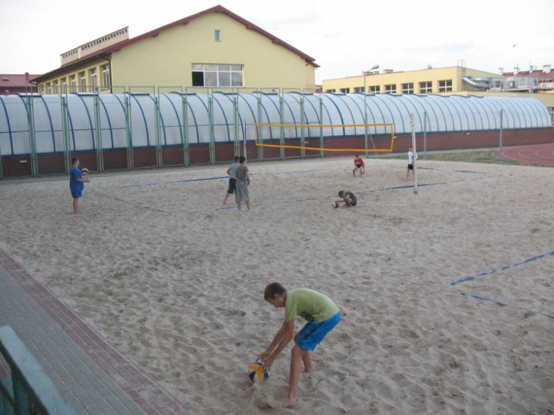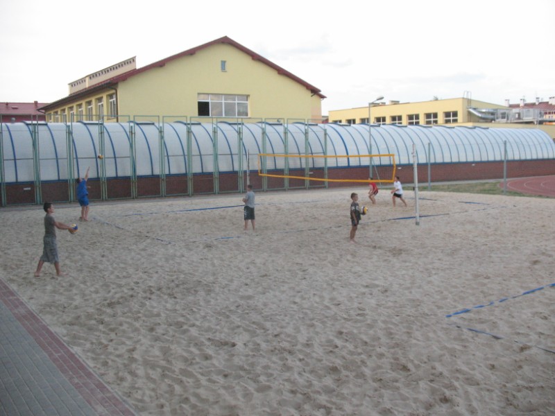 Na boisku przy Publicznym Gimnazjum nr 1 odbywają się zajęcia z siatkówki plażowej 10 osobowej grupie. Na początku dzieci uczestniczące w zajęciach musiały zapoznać się z nietypowym podłożem do gry, jakim jest piasek. Poprzez różnorodny zakres ćwiczeń dzieci uczyły się poruszania po boisku, odbicia sposobem górnym, odbicia sposobem dolnym, zagrywka, atak oraz blok. Kolejnym etapem było wprowadzenie ćwiczeń na ciągłość gry, ćwiczenia na celność, ćwiczenia obrony w polu, przyjęcie zagrywki oraz gra szkolna. Zajęcia prowadzi Jacek Myślak.