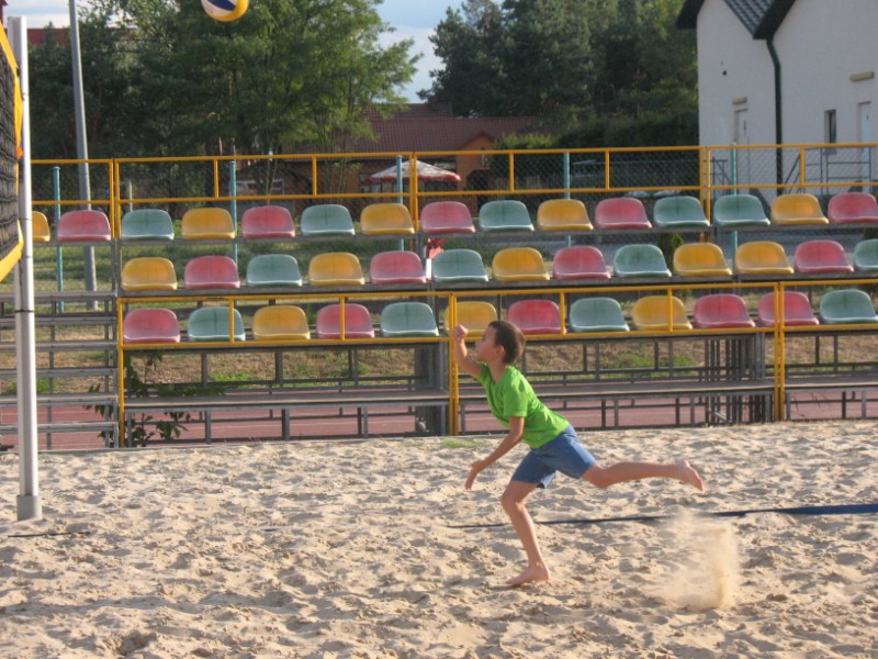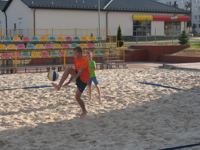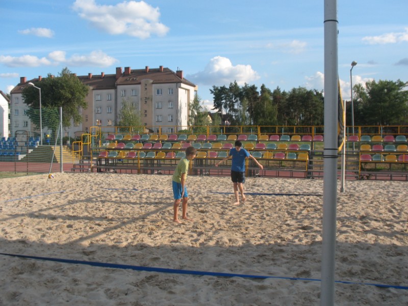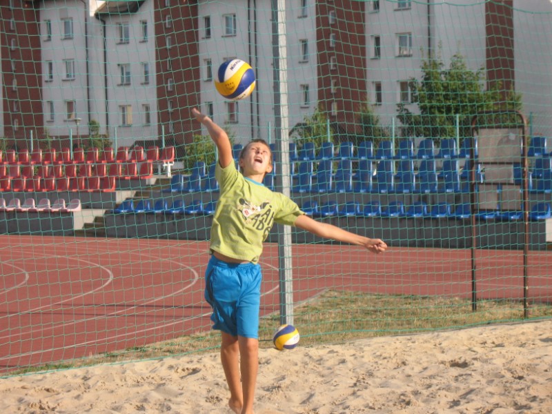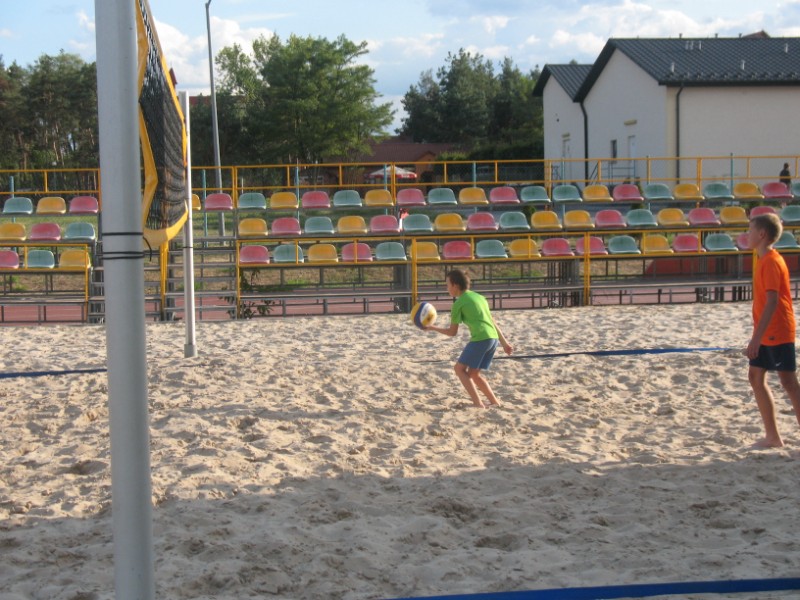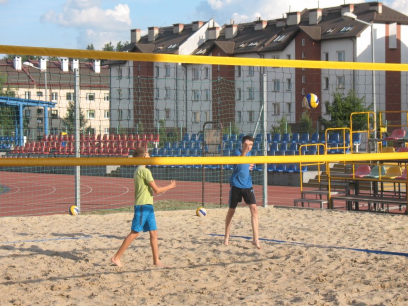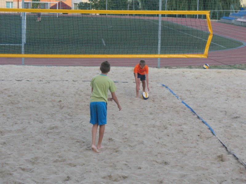 Na boisku przy Publicznym Gimnazjum nr 1 odbywają się zajęcia z siatkówki plażowej 10 osobowej grupie. Na początku dzieci uczestniczące w zajęciach musiały zapoznać się z nietypowym podłożem do gry, jakim jest piasek. Poprzez różnorodny zakres ćwiczeń dzieci uczyły się poruszania po boisku, odbicia sposobem górnym, odbicia sposobem dolnym, zagrywka, atak oraz blok. Kolejnym etapem było wprowadzenie ćwiczeń na ciągłość gry, ćwiczenia na celność, ćwiczenia obrony w polu, przyjęcie zagrywki oraz gra szkolna. Zajęcia prowadzi Jacek Myślak.