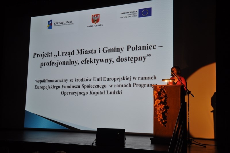 We wtorek 24 września w sali widowiskowej w CKiSz w Polańcu odbyła się konferencja kończąca projekt. Wszystkich gości, jak i uczestników projektu powitała koordynator projektu - Joanna Bugaj, która dokonała podsumowania. Wzrastające oczekiwania obywateli wobec urzędów administracji publicznej stawiają coraz wyższe wymagania w świadczeniu usług i wykonywania zadań. Koordynator projektu nie miała wątpliwości, że projekt spełnił swoje zadanie. Realizacja objęła okres od 1 sierpnia 2011 do 30 września 2013r. Całkowita wartość projektu to kwota 927 086, 65 zł przy dofinansowaniu 788 023, 65zł., w tym wkład własny wniesiony w postaci pracy urzędu to kwota 139 063,00 zł. Budżet projektu co warte podkreślenia został zrealizowany w 99,90%. Łącznie w projekcie wzięło udział 68 pracowników Urzędu Miasta i Gminy w Połańcu (47 kobiet i 21 mężczyzn). Głównym celem projektu był wzrost zdolności instytucjonalnej Urzędu Miasta i Gminy w Połańcu, dzięki wysokiej jakości usług publicznych i zarządzania rozwojem lokalnym. W szczególności realizacja zadania przełożyła się na podniesienie standardu obsługi klienta, poprawę jakości i sprawności pracy kadry urzędniczej, wyznaczanie priorytetowych kierunków rozwoju Gminy Połaniec poprzez opracowanie Strategii Rozwoju Miasta i Gminy, szczegółowych programów sektorowych wraz z wdrożeniem i ewaluacją, a także zwiększenie dostępności usług publicznych oraz możliwości wymiany informacji, dzięki zastosowaniu technologii informatycznych, długofalowe planowanie i wzmacnianie potencjału ludzkiego przez utworzenie Centrum Zarządzania Zasobami Ludzkimi. Wzmocnieniu uległa także współpraca między Urzędem Miasta i Gminy w Połańcu a lokalnymi organizacjami pozarządowymi.