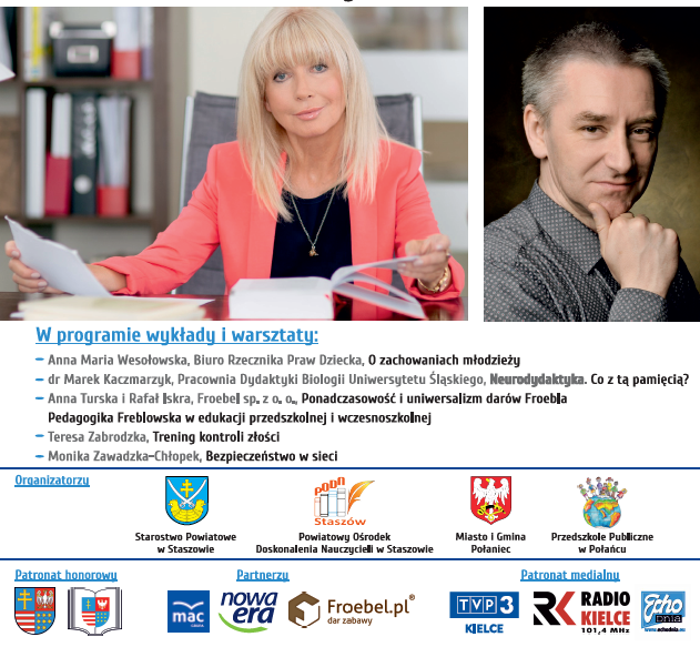 Przedszkole Publiczne w Połańcu oraz Powiatowy Ośrodek Doskonalenia Nauczycieli w Staszowie organizują konferencję, która odbędzie się w dniu 28 lutego 2017 r. w Połańcu z udziałem dyrektorów, nauczycieli, rodziców, przedstawicieli placówek oświatowych i jednostek samorządu terytorialnego powiatu staszowskiego.
