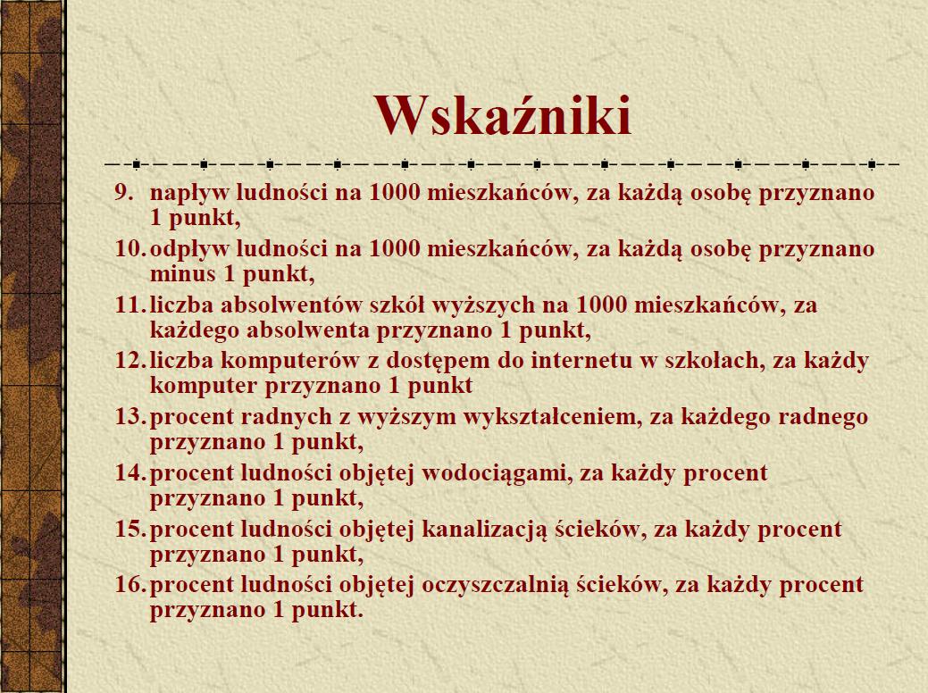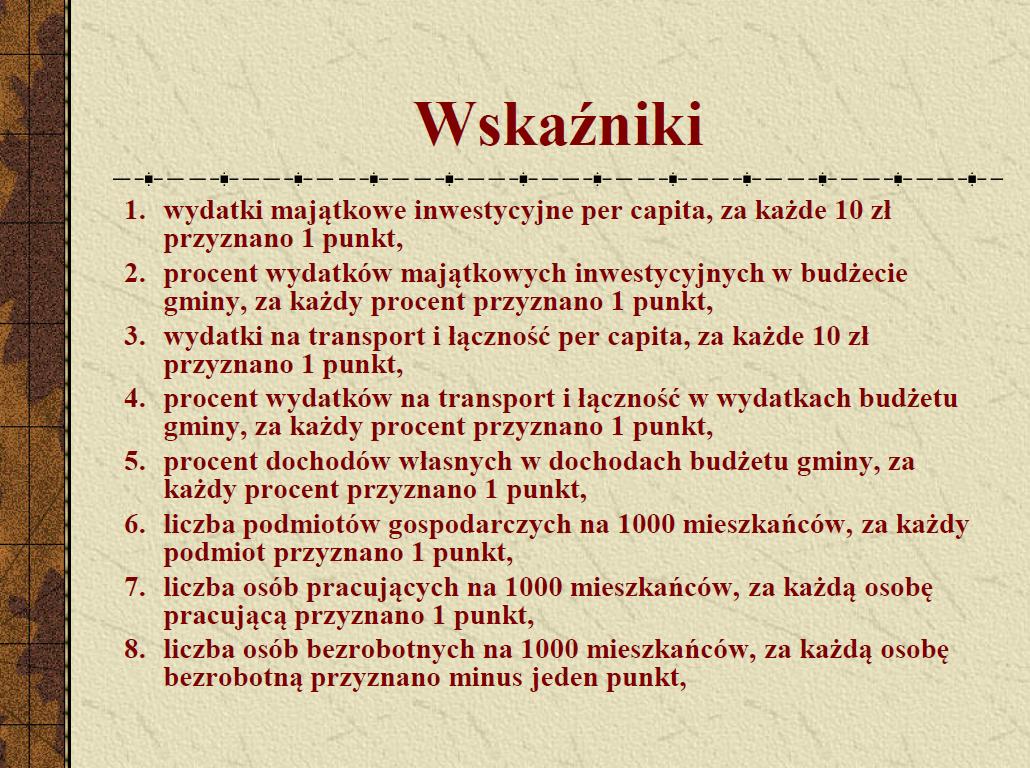POD UWAGĘ BRANO NASTĘPUJĄCE WSKAŹNIKI: