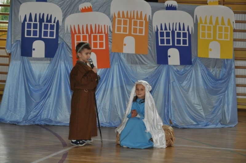 Dzieci w przepięknych strojach występowały przed swoimi rodzicami. Świąteczny wystrój sali oraz występ sympatycznych przedszkolaków wprowadził wszystkich w bożonarodzeniowy nastrój. Po przedstawieniu odbył się kiermasz bożonarodzeniowy, z którego dochód zostanie przeznaczony na pomoc dzieciom z Placówki Opiekuńczo – Wychowawczej w Łoniowie. Dziękujemy Rodzicom za tak liczne przybycie i przyłączenie się do naszej akcji. Jasełka przygotowała Izabela Fic i Anna Kwiatkowska, a kiermasz bożonarodzeniowy - Beata Domagała i Aneta Brzychcy- Zybała z uczniami.