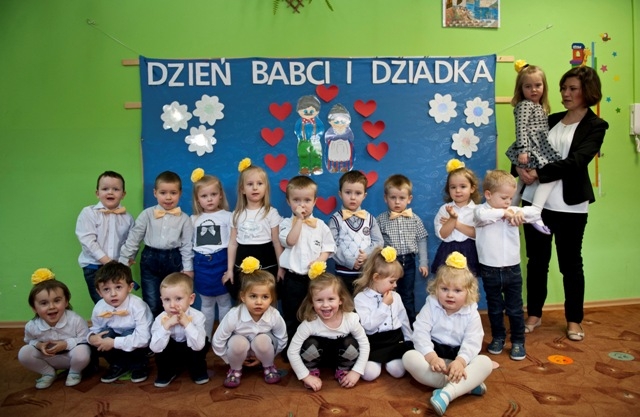 Mimo, że styczeń jest zimowym miesiącem, pełnym chłodnych chwil, są takie dwa dni, jedyne dwa dni w roku, kiedy każdemu robi się cieplej na sercu, bo przecież jest to święto naszych kochanych Babć i Dziadków. W dniach od 20 do 24 stycznia 2014r. do wychowanków naszego przedszkola przybywali wyjątkowi goście- babcie i dziadkowie. Czekały na nich uśmiechnięte wnuczęta, które na tę okazję przygotowały specjalnie występy, laurki oraz upominki.Dzieci ze starszych grup: „Biedronki”, „Pszczółki”, „Smerfy” oraz „Leśne Ludki” jak przystało na doświadczonych aktorów wystąpiły na deskach sceny CKiSz w Połańcu. Pozostałe grupy przyjmowały dostojnych gości w swoich salach, gdzie z drżeniem malutkich serduszek prezentowały swoje programy artystyczne. Przedszkolaki pod czujnym okiem swoich wychowawczyń przygotowały przedstawienia, w których wyrazili swoją wielką miłość do babć i dziadków. Mali artyści z przejęciem odtwarzali swoje role, a dostojni goście ze wzruszeniem odbierali czułe słowa, kierowane pod ich adresem. Oprócz montażu słowno - muzycznego, goście obejrzeli także pokazy taneczne w wykonaniu swoich wnuczek i wnuczków. Dla swoich bliskich dzieci przygotowały drobne upominki w postaci laurek.Występom towarzyszył słodki poczęstunek przygotowany przez rodziców naszych podopiecznych.Atmosfera tej uroczystości była wspaniała, podziękowaniom ze strony gości nie było końca. Spotkania upłynęły w miłej i serdecznej atmosferze. Dzieci poprzez Jasełka, wiersze, piosenki i taniec, mogły wyrazić kochanym babciom i dziadkom, swoje uczucia za trud włożony w ich wychowanie. Serdeczne podziękowania składamy Rodzicom, którzy pomagali w przygotowaniu uroczystości obchodów „Dnia Babci i Dziadka”.