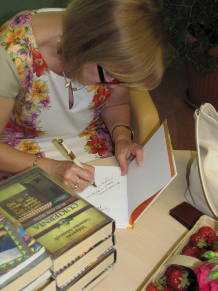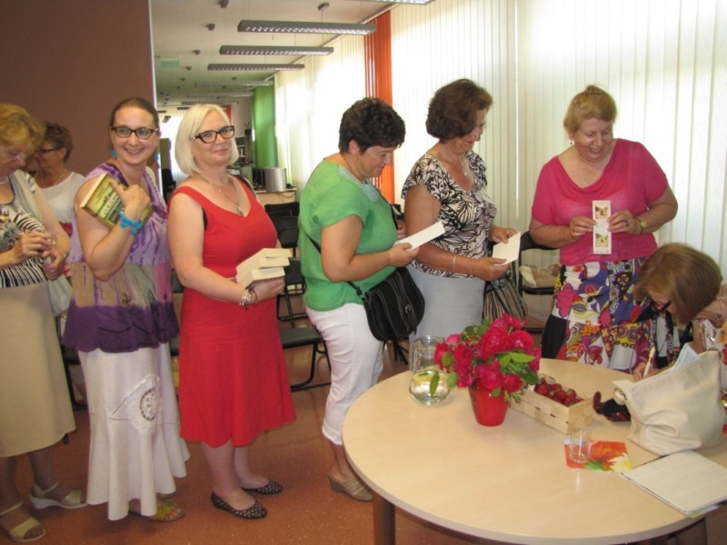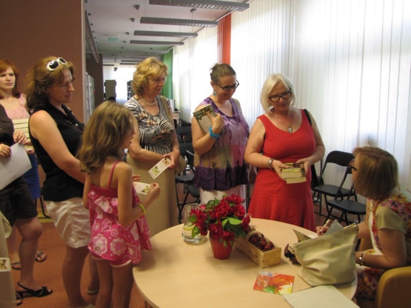 Czytelnicy podczas spotkania dowiedzieli się również o innych książkach autorki i poznali ciekawostki z nimi związane. Pani Małgorzata opowiadała o tym ile satysfakcji dawała jej praca nad powieściami i opowiadaniami dla młodych czytelników. Z sentymentem i uśmiechem na ustach wspominała spór internautów wywołany ostatecznym wyborem bohaterki powieści „Niebieskie nitki”, świadczący o emocjach jakie potrafi wzbudzać literatura. Zapytana o plany na przyszłość pisarka opowiedziała o swoim najnowszym projekcie. W lutym 2015 roku ukaże się najnowsza książka pani Gutowskiej-Adamczyk. Zainauguruje cykl nazwany „sagą warszawską”. Będzie to powieść awanturnicza opisująca burzliwe dzieje bohaterów na tle wydarzeń 18 wieku. Autorka zdradziła kilka sekretów nowego cyklu wzbudzając ciekawość czytelników zgromadzonych na spotkaniu. Pani Małgorzata dała się poznać jako osoba otwarta, bezpośrednia i lubiąca kontakt z ludźmi. Bez skrępowania odpowiadała na zadawane jej pytania, w tym o życie prywatne. Na koniec chętnie pozowała do pamiątkowych fotografii i podpisywała swoje książki. Spotkanie zorganizowano we współpracy z Wojewódzką Biblioteką Publiczną w Kielcach w ramach Dyskusyjnych Klubów Książki. Dofinansowano ze środków Instytutu Książki.