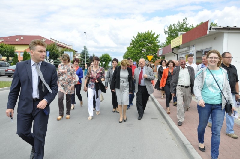 Innowacyjne projekty stanowiące praktyczne rozwiązania konkretnych problemów, przynoszące zamierzone rezultaty, charakteryzujące się odpowiednią jakością – nowoczesne, aktualne i efektywne ze zrównoważonym wykorzystaniem funduszy zewnętrznych – takich przykładów na terenie Miasta i Gminy Połaniec mamy wiele. Nie uchodzi to uwadze ekspertom przyznającym zaszczytne miejsca, ale również sąsiednim gminom. W piątek 20 czerwca gościliśmy 24 - osobową delegację z Chmielnika – samorządowców na czele z Burmistrzem – Jarosławem Zatorskim, radnych, sołtysów, którzy przyjechali zapoznać się z ofertą Połańca, zobaczyć zrealizowane u nas inwestycje i podzielić się własnymi doświadczeniami.