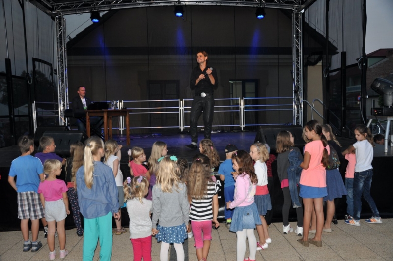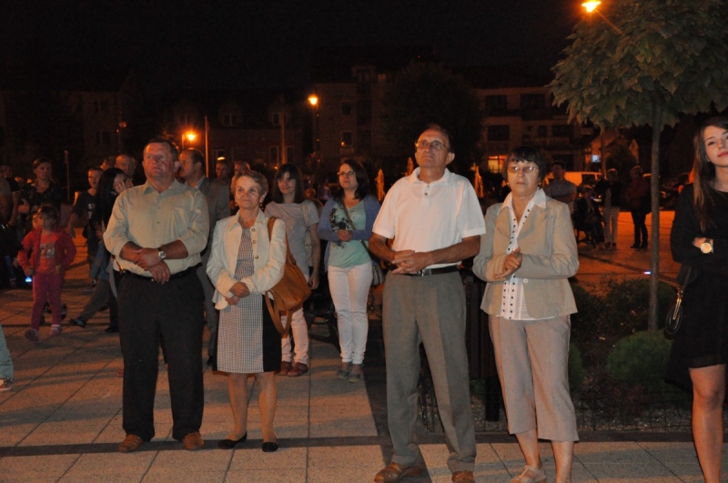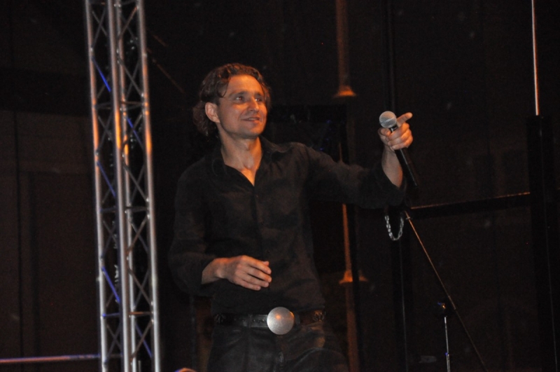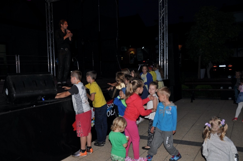 Warto było przyjść – zobaczyć i posłuchać zjawiskowego widowiska. Wstępem do koncertu gwiazdy był wspaniały pokaz taneczny dzieci uczestniczących na zajęcia do Centrum Kultury i Sztuki. Tuż po nim na scenie pojawił się charyzmatyczny wokalista i aktor. Zdobywca wielu nagród, z których najważniejsze to Grand Prix, nagrody publiczności i dziennikarzy XXIV Przeglądu Piosenki Aktorskiej Wrocław 2003 oraz nagroda dziennikarzy za wykonanie utworu Czesława Niemena pt. Dziwny jest ten świat”. Kto choć trochę zasmakował muzyki artysty wie, że Janusz Radek jest piosenkarzem o głosie poważnym, lirycznym, demonicznym, a nawet ironicznym. To za Jego sprawą Rynek w Połańcu zamienił się w miejsce gry dźwięków, głosu i subtelnych świateł. Na scenie panował lekki półmrok, delikatnie rozświetlony barwnymi pobłyskami, który współtworzył ciepłą i tajemniczą atmosferę. Janusz Radek już na wstępie zaskarbił sobie uznanie połanieckiej publiczności muzycznym przywitaniem. Recital rozpoczął się od mocnych brzmień. Najbardziej jednak artysta podbił sobie serca śpiewając przepiękny utwór do wiersza Haliny Poświatowskiej "Kiedy umrę kochanie…" opowiadającej o przeplataniu się życiu ze śmiercią. Przy słowach „A ty nie pozwól przecież żebym umarł w świecie, który ciemny jest i chłodny” panowała cisza i skupienie. Ale cisza ta została szybciutko przerwana gorącymi owacjami przy śpiewanej historii miłosnej. Na bis Janusz Radek wykonał kolejny porywający za serce utwór "Dziękuję za miłość", przy której niejedną osobę na widowni ogarnęło wzruszenie. Proste dźwięki i odbijający się cień sylwetki artysty potęgowały tę niezapomnianą chwilę zadumy. Recital w Połańcu należał do tych występów, które nie łatwo będzie zapomnieć – nie łatwo przecież wymazać z pamięci tak liryczne i refleksyjne słowa. Janusz Radek pokazał szeroki wachlarz swych umiejętności wokalnych i scenicznych, wprowadzając publiczność na przemian w stan melancholii, jak i optymizmu. Tym nurtem muzycznym pożegnaliśmy muzyczne spotkania przy fontannach.