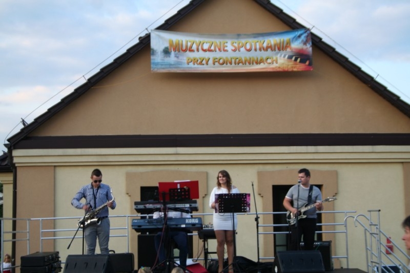 Pogoda zazwyczaj była wymarzona – tak i było podczas ostatniego sierpniowego popołudnia, podczas którego bawiliśmy się z zespołem Malibu oraz przy muzyce ludowej w wykonaniu zespołu Staszicówka – 31.08.2014r., Koncert lokalnego zespołu Malibu był wybuchową mieszanką muzyki tanecznej z pogranicza dance i disco polo. Znane wszystkim wesołe, biesiadne piosenki zachęcały do podśpiewywania i wspólnej zabawy. Występ zespołu Staszicówka Band z dużą dawką muzyki ludowej i folkowego śpiewania szczególnie spodobał się starszemu pokoleniu. Stare, ludowe rytmy przywodziły na myśl ciepłe wspomnienia z dzieciństwa.Ostatnią, sierpniową niedzielę przy fontannach zakończyła prezentacja młodzieży z Centrum Kultury i Sztuki w energetyzującym, cygańskim klimacie. W rytmie żywiołowych melodii wirowały czerwone spódnice tworząc niezwykłe taneczne widowisko.