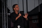 Nie mniej emocji było podczas minionej niedzieli 7.09, kiedy to żegnaliśmy muzyczne lato z Januszem Radkiem. Powiewał lekki, przyjemny wietrzyk, zachód słońca i w roli głównej muzyka… światło… woda. Widzów przybywało… przychodziły całe rodziny z dziecięcymi wózkami, młode pary rozkładające się wygodnie przy fontannach i starsze osoby odpoczywające na ławeczkach. Frekwencja podczas niedzielnego muzykowania pozwala stwierdzić, że organizatorzy spełnili oczekiwania. Połańczanie żądni są kolejnych tego rodzaju plenerowych spotkań muzycznych.