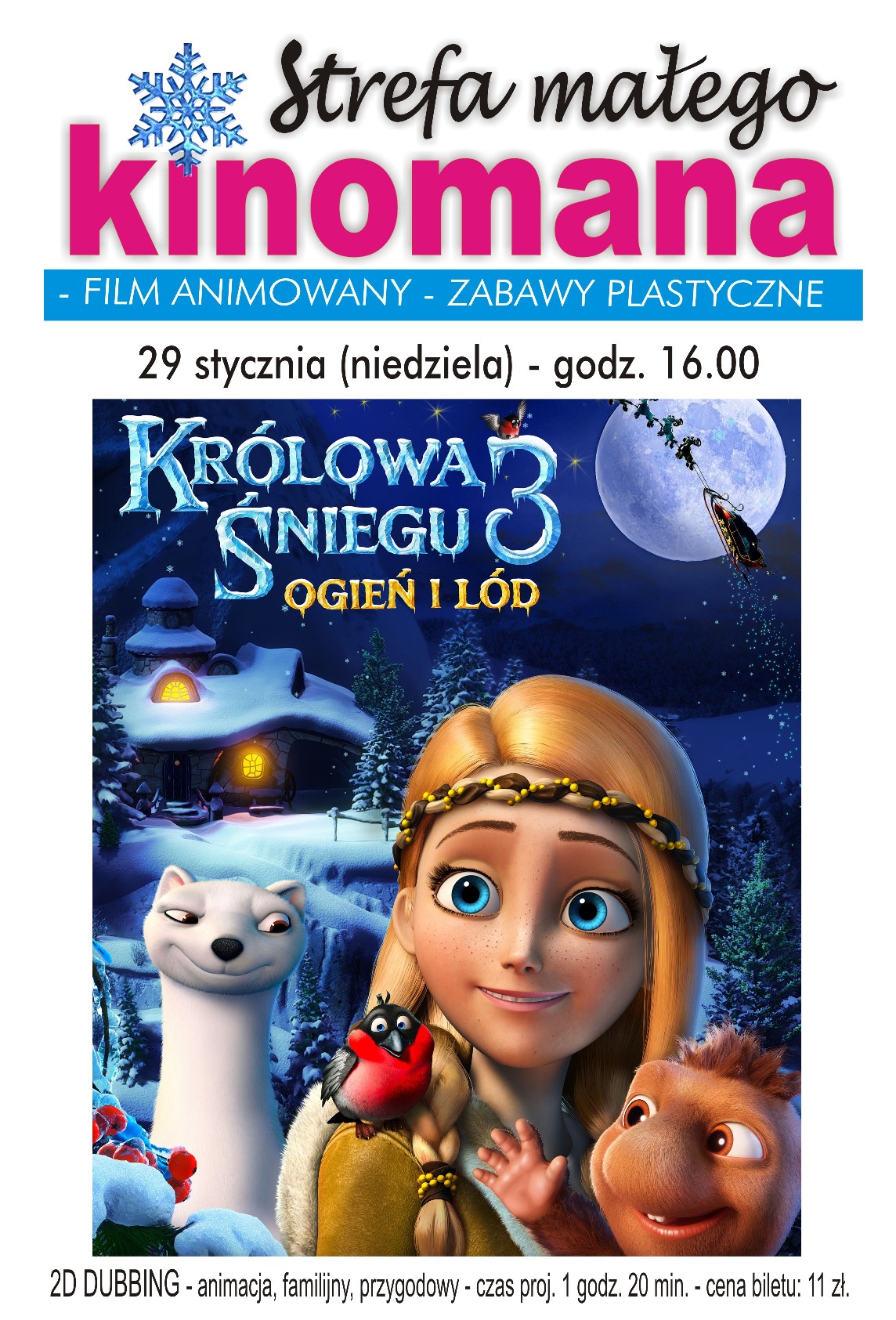 Przed nami pierwsza w tym roku Strefa Małego Kinomana z bajką animowaną dla dzieci i zabawami plastycznymi w cenie biletu: 11 zł. Zapraszamy najmłodszych 29 stycznia o godz. 16:00 do krainy "Królowej Śniegu" z artystyczną niespodzianką!