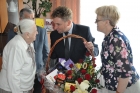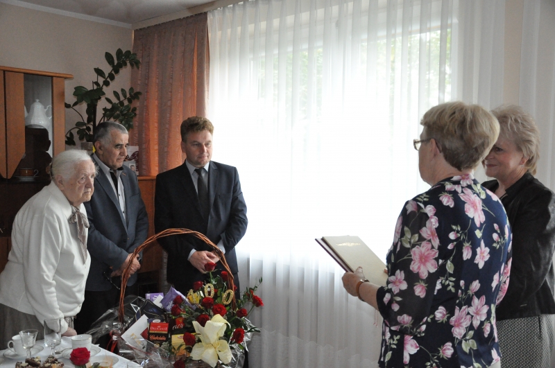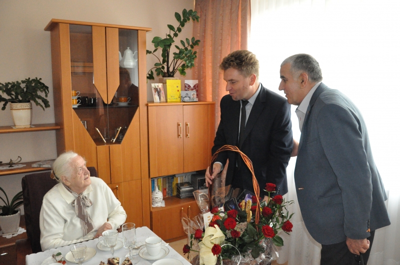 Pan Burmistrz składając życzenia zwrócił także uwagę na to, iż 100 lat to przecież cały wiek naszej polskiej historii, a w związku z nim to także ogrom życiowych doświadczeń, tych dobrych i tych złych. Dlatego, jak podkreślił Pan Burmistrz, wiek Pani Marianny jest naszym wspólnym, drogocennym dziedzictwem. Jubilatka, pełna radości i optymizmu, nie kryła wzruszenia przyjmując życzenia. Na jej ręce spłynęły listy gratulacyjne, które wręczył burmistrz od premiera oraz wojewody świętokrzyskiego. W dalszej części urodzinowego spotkania przyszedł czas na tort, rozmowy i... poszukiwanie recepty na długowieczność. Taki jubileusz to okazja do wspomnień, a było ich wiele, bo zbierały się na nie wydarzenia z całego wieku. Pełna humoru i aktywności słynna krawcowa z Połańca do dzisiaj jest ciepła i miła.. Krótkie chwile spędzone wspólnie z Panią Marianną i jej najbliższymi były okazją do rozmowy o historii Połańca i ludziach mieszkających tutaj dziś, i kiedyś…