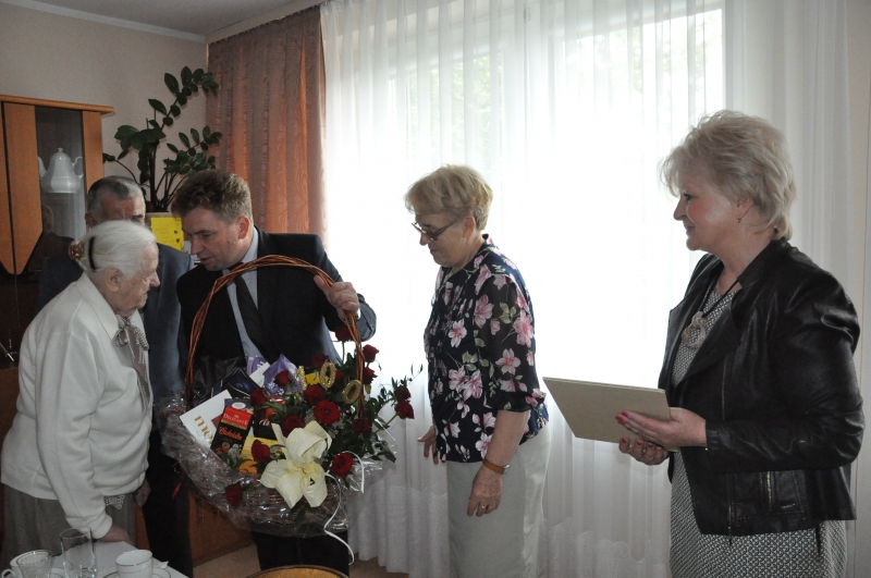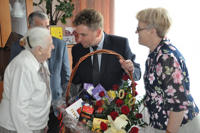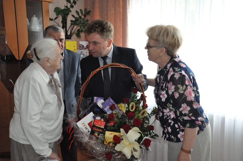 11 września br. Pani Marianna Kosowicz z Połańca (z domu Kubik) ukończyła 100 lat. Przez ten czas obserwowała zmienne koleje XX-wiecznej historii. Dziś oprócz licznych wspomnień ma także liczną rodzinę. Wychowała dzieci i doczekała się wnuków. W dniu tak wyjątkowych urodzin dostojną Jubilatkę zamieszkująca obecnie u syna w Busku – Zdroju odwiedził Burmistrz Miasta i Gminy Połaniec – Jacek Tarnowski i Kierownik Urzędu Stanu Cywilnego – Alina Dudek by osobiście złożyć jej życzenia i wręczyć kwiaty oraz kosz słodkości. W dniu 100-lecia urodzin Pani Marianny Kosowicz, burmistrz przekazał wyrazy szacunku i uznania. Pogratulował Jubilatce tak pięknego wieku, gdyż jak sam powiedział – „Nie każdy z nas ma możliwość obchodzenia setnych urodzin. Sto lat to czas, który dla większości z nas, zwłaszcza na początku życiowej drogi wydaje się nie do osiągnięcia, to czas w którym zebrać można mnóstwo doświadczeń i mądrości, przeżyć wspaniałe chwile szczęścia i niezmierzonej radości z nim związanych”.