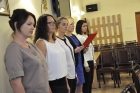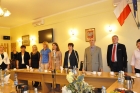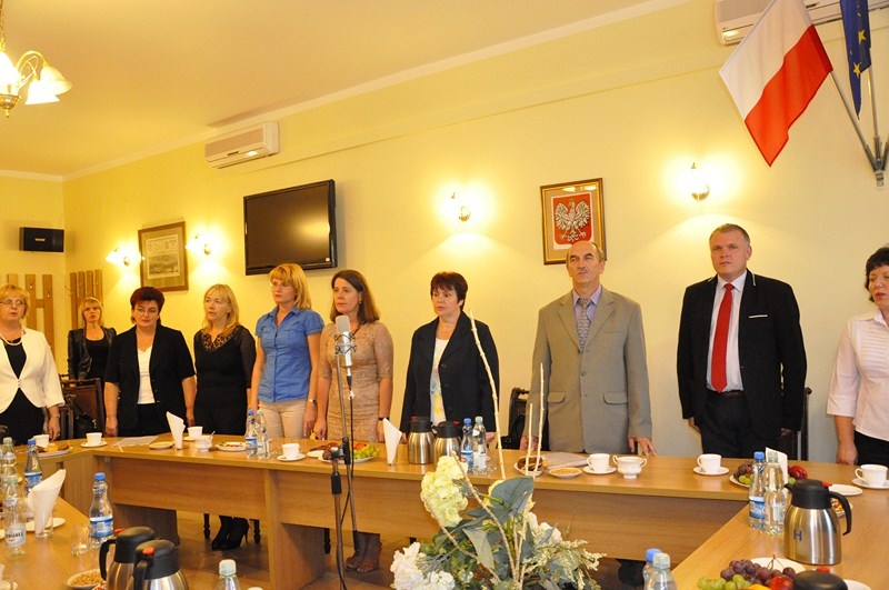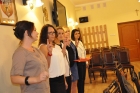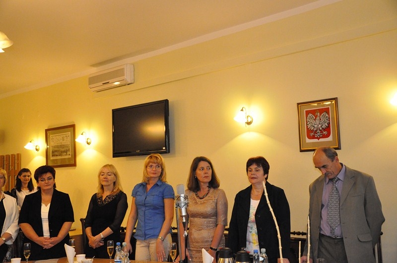 Uroczyste spotkanie otworzyła Pani Jadwiga Krala- Dyrektor Zespołu Ekonomiczno-Administracyjnego Oświaty i Wychowania, która z dumą mówiła o mianowanych nauczycielkach, podkreślając jak wspaniale zaprezentowały się na egzaminach, upewniając zebranych w przekonaniu, że są to osoby odpowiednie do pełnienia funkcji nauczyciela. "Pragnę zaznaczyć, że poziom wiedzy i sposób prezentacji dorobku zawodowego przez zdających stał na bardzo wysokim poziomie. Panie były doskonale przygotowane do egzaminu, a ich wypowiedzi były świadectwem dużego zaangażowania w pracę i chęć nieustannego doskonalenia swoich umiejętności" - mówiła dyrektor. Na uroczystości ślubowania obecni byli: Prezes Zarządu Oddziału Związku Nauczycielstwa Polskiego - Zbigniew Brzeski, Burmistrz Połańca – Jacek Tarnowski, Wiceprzewodniczący Rady Miejskiej - Zdzisław Kwiatkowski, Skarbnik Gminy - Małgorzata Żugaj, Radna Rady Miejskiej - Małgorzata Konwicka - Dalmata oraz dyrektorzy i nauczyciele z miejscowych placówek oświatowych. Po odśpiewaniu Hymnu Państwowego i złożeniu ślubowania, panie odebrały akt mianowania i symboliczną różę z rąk Burmistrza – Jacka Tarnowskiego i Wiceprzewodniczącego - Zdzisława Kwiatkowskiego.