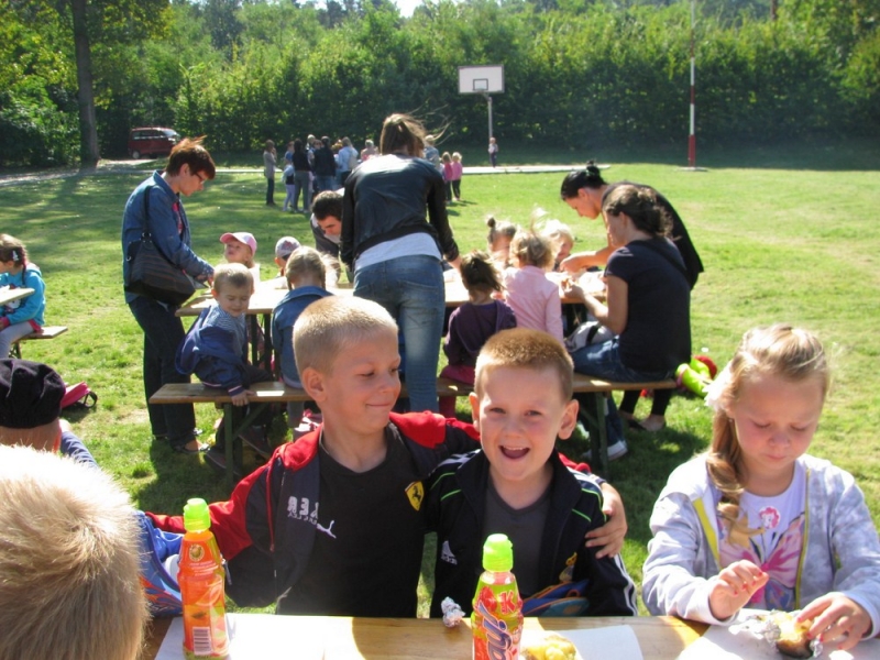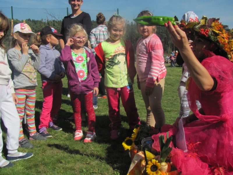 Uroczyste obchody Święta Pieczonego Ziemniaka rozpoczęła Pani Dyrektor Anna Kaniszewska, która przywitała wszystkie zebrane dzieci oraz Pani Jesień, która zaprosiła nas do wspólnej zabawy. Pani Jesień, której suknia zachwyciła każdego przedszkolaka miała dla dzieci wiele ciekawych konkursów i quizów o tematyce jesiennej. Piknik stał się okazją do wspólnych zabaw i gier zorganizowanych przez nauczycieli poszczególnych grup. Dzieci mogły aktywnie uczestniczyć w zabawach ruchowych na świeżym powietrzu, które sprawiły im wielką frajdę i przyjemność oraz wpływają na ich zdrowie. Po wszystkich zabawach przyszła pora na pyszne ziemniaki, które na świeżym powietrzu smakowały wyjątkowo i wyśmienicie! Na koniec tej wielkiej imprezy Pan Burmistrz Jacek Tarnowski wraz z Pani Małgorzatą Żugaj- Skarbnik Miasta i Gminy Połaniec w nagrodę za aktywny udział w konkursach i zabawach wręczyli każdemu przedszkolakowi piękną kolorowankę. Pełni optymizmu i z piosenką na ustach wróciliśmy do przedszkola by dzielić się wrażeniami z rodzicami. Dni te na długo pozostaną w naszej pamięci.