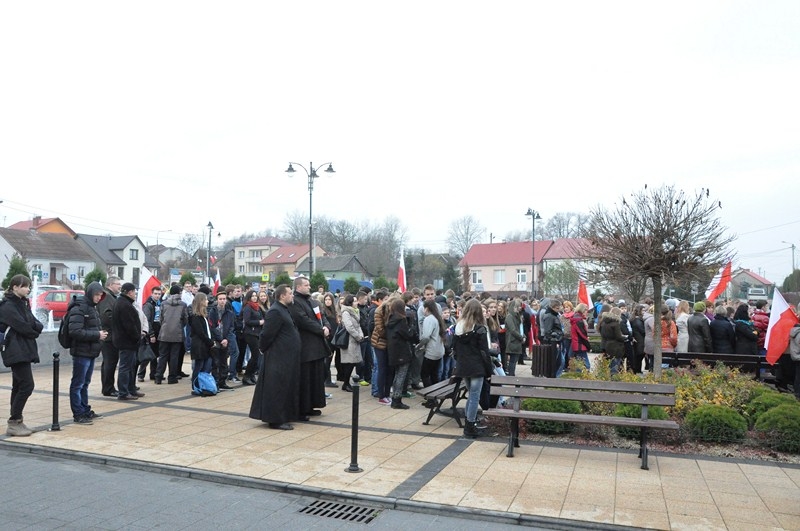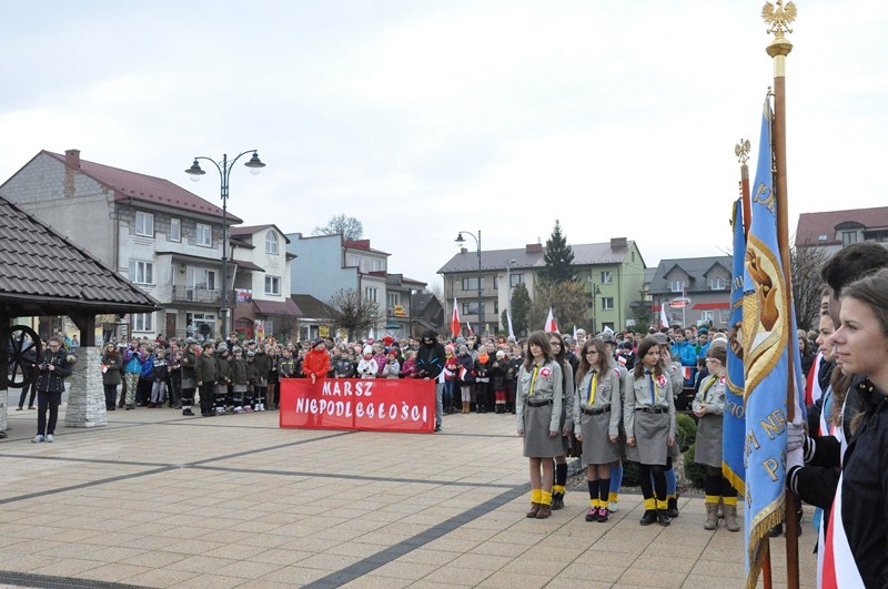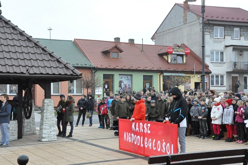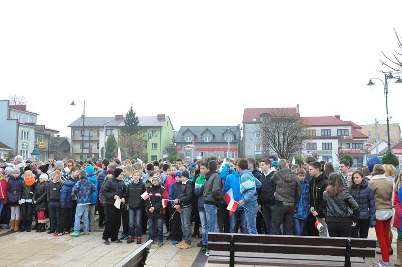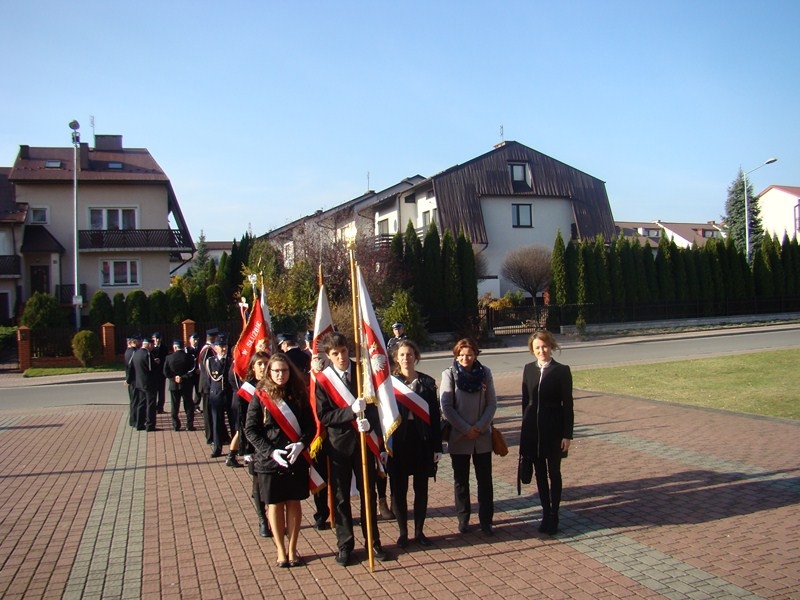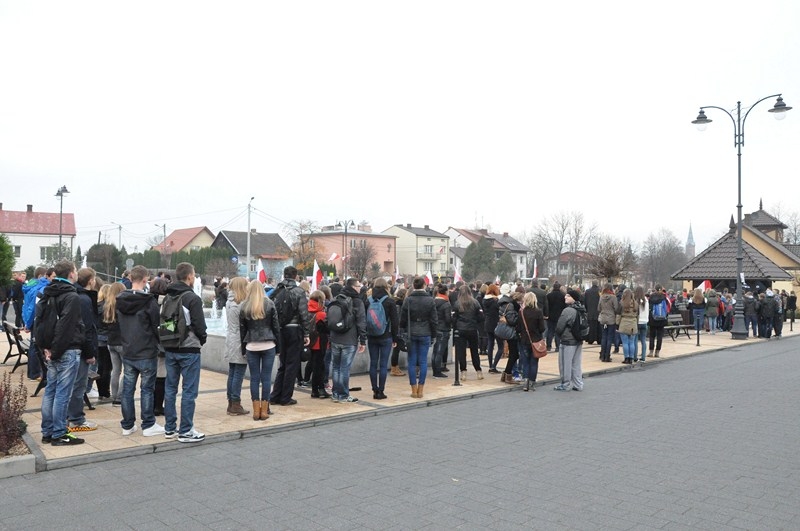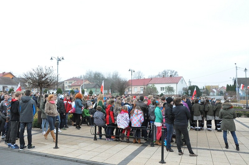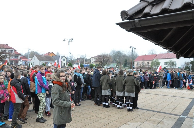 W tym roku tradycji stało się zadość i uczniowie kolejny już raz wzięli UDZIAŁ W MARSZU ULICAMI NASZEGO MIASTA. Uczniowie z Połańca wraz z opiekunami przeszli ulicami: Żapniowską, Czarnieckiego oraz ul. Ruszczańską, by ostatecznie dotrzeć na Plac Uniwersału Połanieckiego. Podczas marszu rozbrzmiewały pieśni patriotyczne. Przemarsz zakończył się odezwą do wszystkich zgromadzonych na Placu Uniwersału Połanieckiego w Połańcu. Marsz ma za zadanie upamiętnienie wydarzeń prowadzących do odzyskania niepodległości oraz osób, które się do tego przyczyniły. Wszystkich zgromadzonych na Placu Uniwersału Połanieckiego gorąco powitał Dyrektor Publicznego Gimnazjum Nr 1 im. Kr. Jadwigi w Połańcu. – Jerzy Nowak, który przedstawił rys historyczny, kiedy to nasi przodkowie przez lata niewoli, która rozpoczęła się w wyniku rozbiorów dokonanych przez Rosję, Austrię i Prusy w 1795 r., niestrudzenie, wytrwale, wręcz szaleńczo podejmowali kolejne próby walki z zaborcami. Wśród zaproszonych gości obecni byli przedstawiciele lokalnego samorządu - Burmistrz Miasta i Gminy Połaniec – Jacek Tarnowski, Wiceprzewodniczący Rady Miejskiej w Połańcu – Zdzisław Kwiatkowski, Wiceprzewodniczący - Andrzej Wawrzyniec, Skarbnik Miasta i Gminy Połaniec – Małgorzata Żugaj, a także radni, dyrektorzy, prezesi jednostek, dyrektorzy szkół, nauczyciele i licznie przybyła młodzież szkolna.