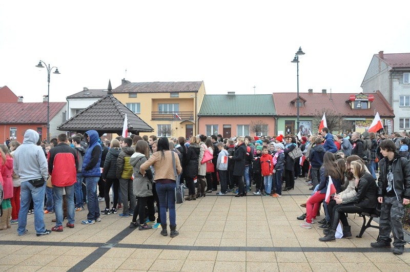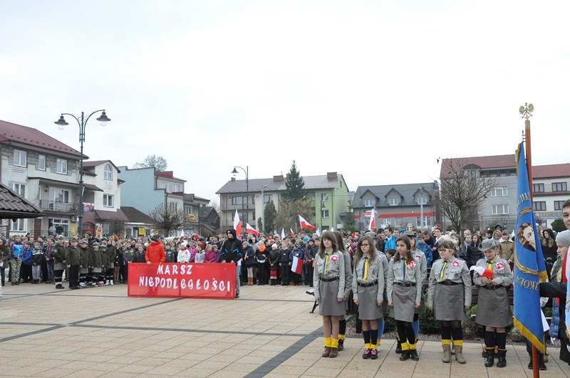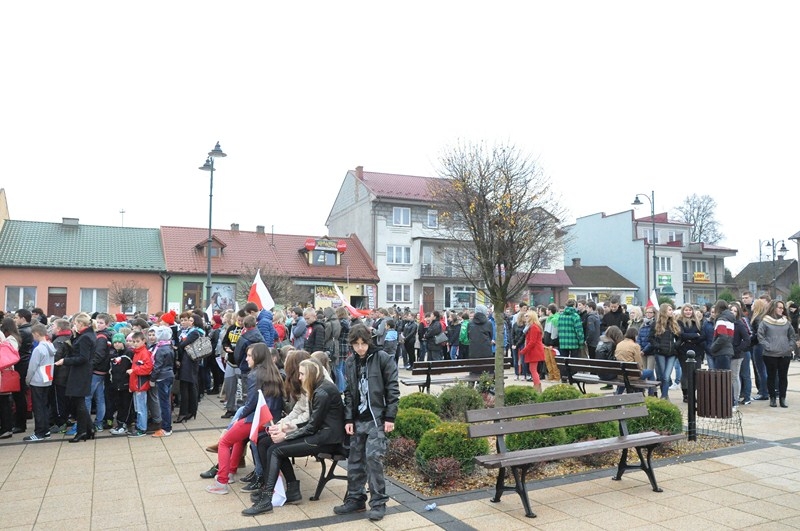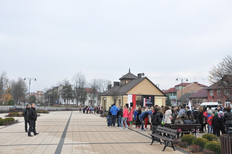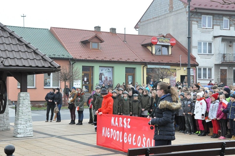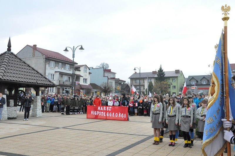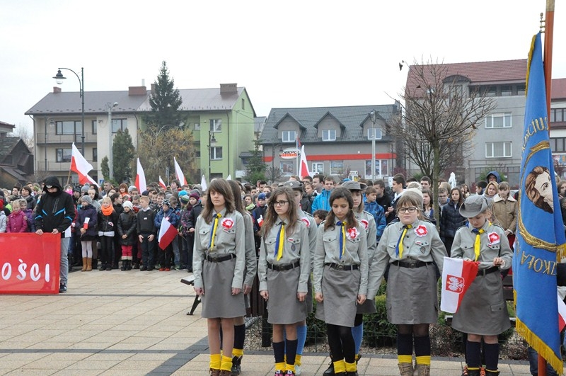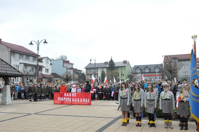 W tym roku tradycji stało się zadość i uczniowie kolejny już raz wzięli UDZIAŁ W MARSZU ULICAMI NASZEGO MIASTA. Uczniowie z Połańca wraz z opiekunami przeszli ulicami: Żapniowską, Czarnieckiego oraz ul. Ruszczańską, by ostatecznie dotrzeć na Plac Uniwersału Połanieckiego. Podczas marszu rozbrzmiewały pieśni patriotyczne. Przemarsz zakończył się odezwą do wszystkich zgromadzonych na Placu Uniwersału Połanieckiego w Połańcu. Marsz ma za zadanie upamiętnienie wydarzeń prowadzących do odzyskania niepodległości oraz osób, które się do tego przyczyniły. Wszystkich zgromadzonych na Placu Uniwersału Połanieckiego gorąco powitał Dyrektor Publicznego Gimnazjum Nr 1 im. Kr. Jadwigi w Połańcu. – Jerzy Nowak, który przedstawił rys historyczny, kiedy to nasi przodkowie przez lata niewoli, która rozpoczęła się w wyniku rozbiorów dokonanych przez Rosję, Austrię i Prusy w 1795 r., niestrudzenie, wytrwale, wręcz szaleńczo podejmowali kolejne próby walki z zaborcami. Wśród zaproszonych gości obecni byli przedstawiciele lokalnego samorządu - Burmistrz Miasta i Gminy Połaniec – Jacek Tarnowski, Wiceprzewodniczący Rady Miejskiej w Połańcu – Zdzisław Kwiatkowski, Wiceprzewodniczący - Andrzej Wawrzyniec, Skarbnik Miasta i Gminy Połaniec – Małgorzata Żugaj, a także radni, dyrektorzy, prezesi jednostek, dyrektorzy szkół, nauczyciele i licznie przybyła młodzież szkolna.