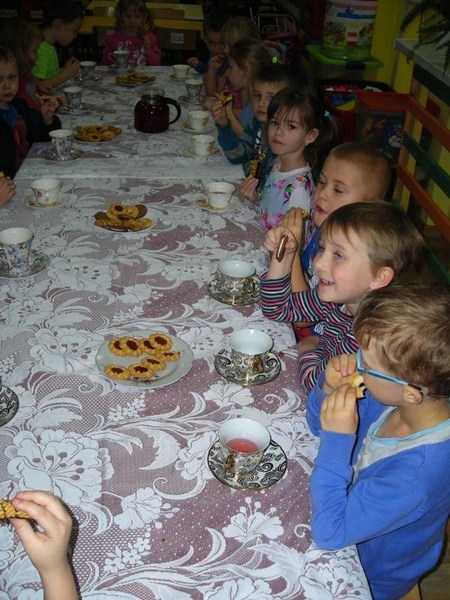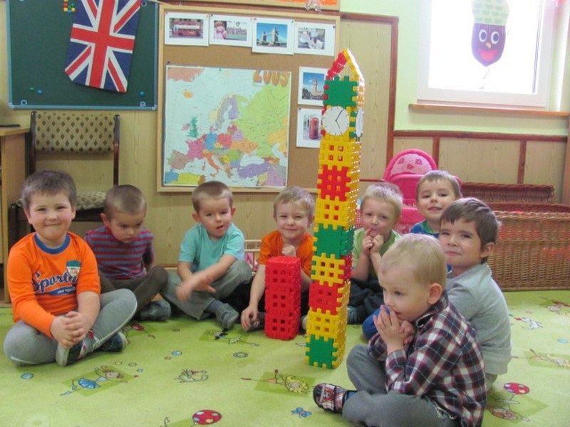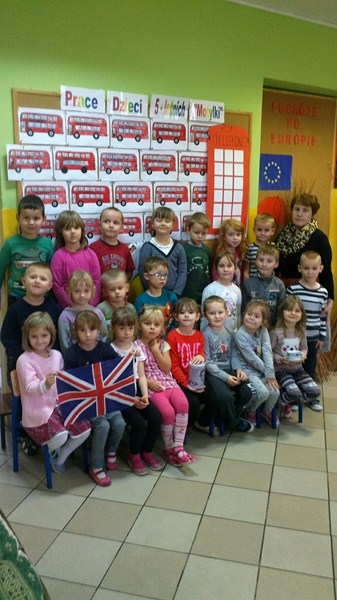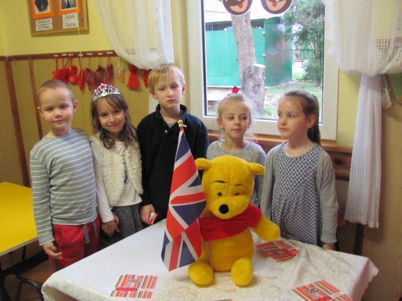 W dniach 17.11– 21.11.2014r. w Przedszkolu Publicznym w Połańcu odbył się „Tydzień Brytyjski”. Był to tydzień tematyczny w ramach planu rocznego „Przedszkolne podróże po Europie”. We wrześniu bogaciliśmy wiedzę o własnym kraju – „Polska – kraj nad Wisłą”, poznawaliśmy symbole i legendy. W październiku odbył się „Tydzień Europejski” – poznawaliśmy flagę, walutę, hymn oraz maskotkę Misia Unisia – reprezentującą Unię Europejską. W ramach rozbudzenia zainteresowania i zaciekawienia wybranymi krajami Unii Europejskiej odbył się „Tydzień Brytyjski”. Dzięki licznym zabawom, pogadankom i przedmiotom związanym z Wielką Brytanią przedszkolaki zapoznawały się z zabytkami, zwyczajami i kulturą wyspiarzy. Każdego dnia działo się coś ciekawego. Spędziliśmy czas słuchając hymnu Wielkiej Brytanii, była oczywiście „Herbatka u królowej Elżbiety II”, czyli five o’clock tea oraz poznaliśmy maniery panujące w Pałacu Buckingham. Wykonaliśmy piękne prace plastyczne przedstawiające flagę oraz czerwony piętrowy autobus. Aby sprawić wrażenie autentyczności wyprawy całe przedszkole udekorowane było brytyjskimi symbolami. Na salach przedszkolnych widniały napisy w języku angielskim oraz flagi brytyjskie . Można było zapoznać się z gazetkami ściennymi poświęconymi m. in. rodzinie królewskiej, Londynowi, ciekawym zabytkom. Podsumowaniem zdobytej wiedzy był międzygrupowy quiz dotyczący przygód Kubusia Puchatka oraz poznanych wiadomości na temat Wielkiej Brytanii. Dzieciaki z pewnością poszerzyły i wzbogaciły swoje wiadomości. Wkrótce czeka nas „Tydzień Niemiecki”. Dziękujemy serdecznie wszystkim rodzicom, którzy udostępnili swoje gadżety, które posłużyły nam na dekorację angielskiego kącika.